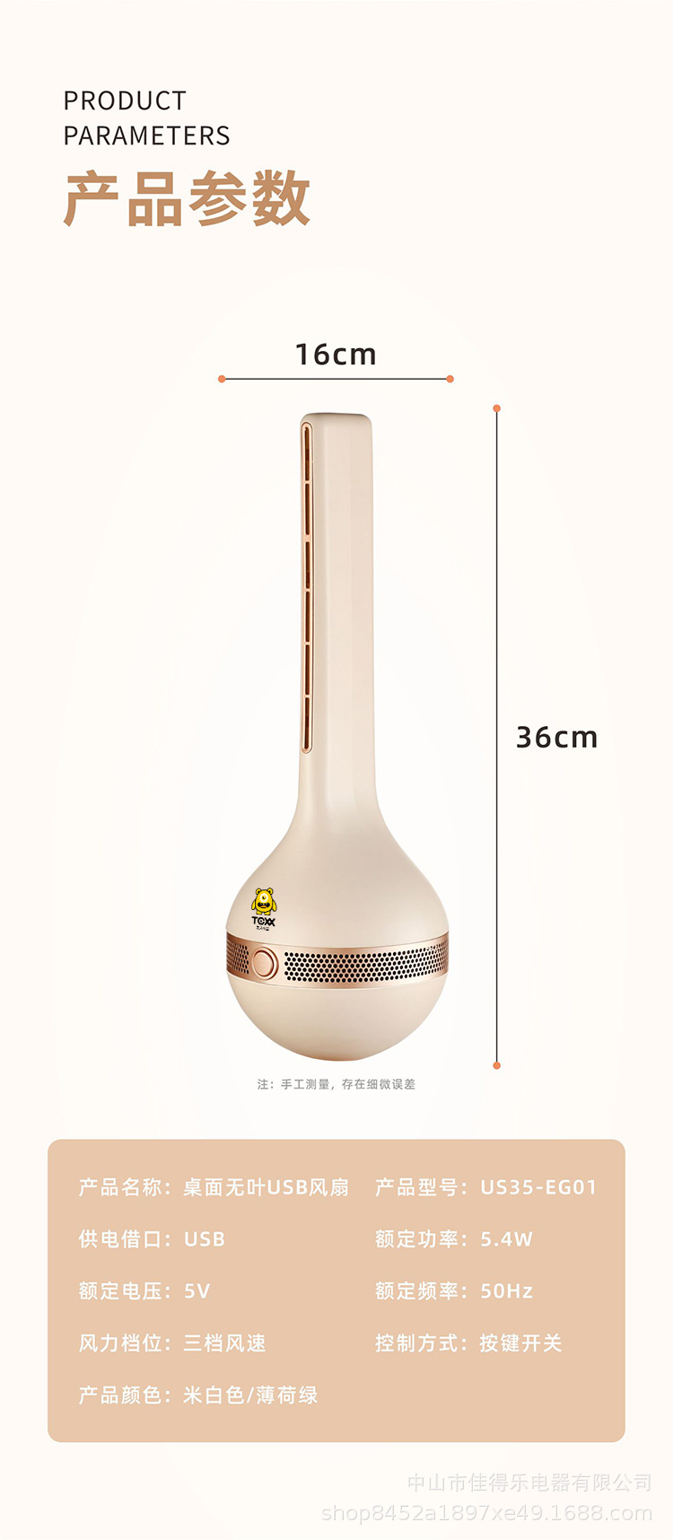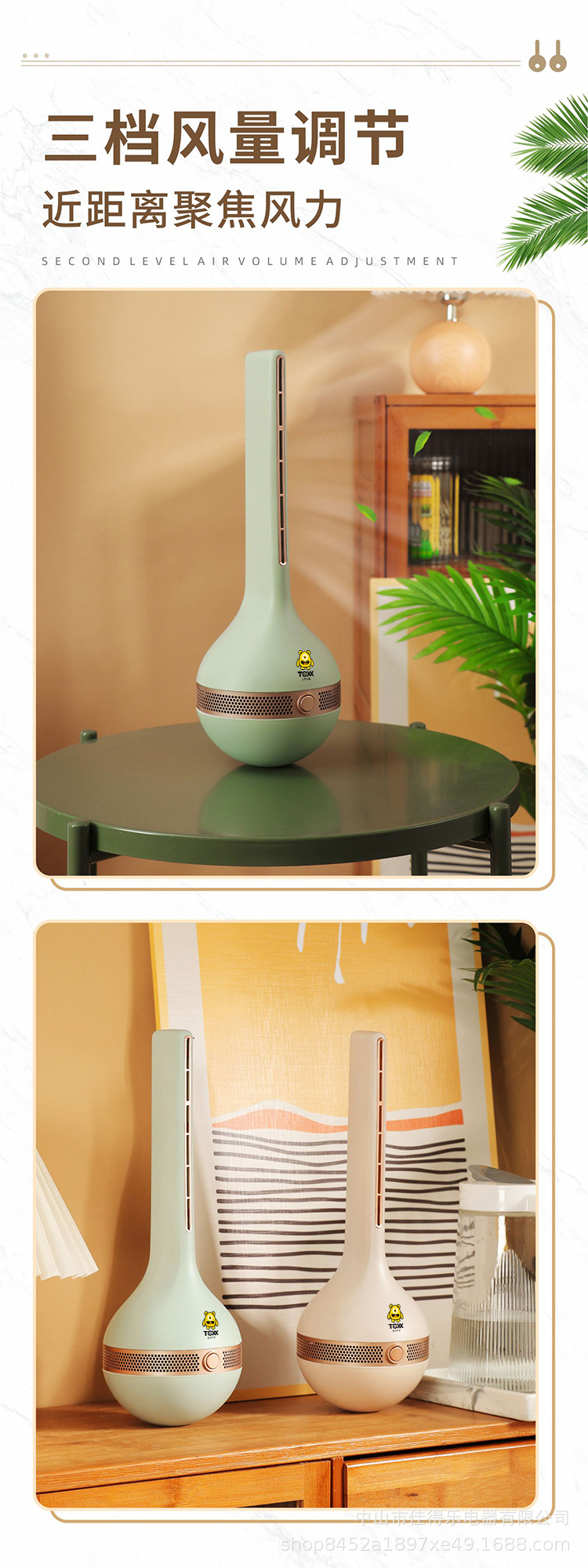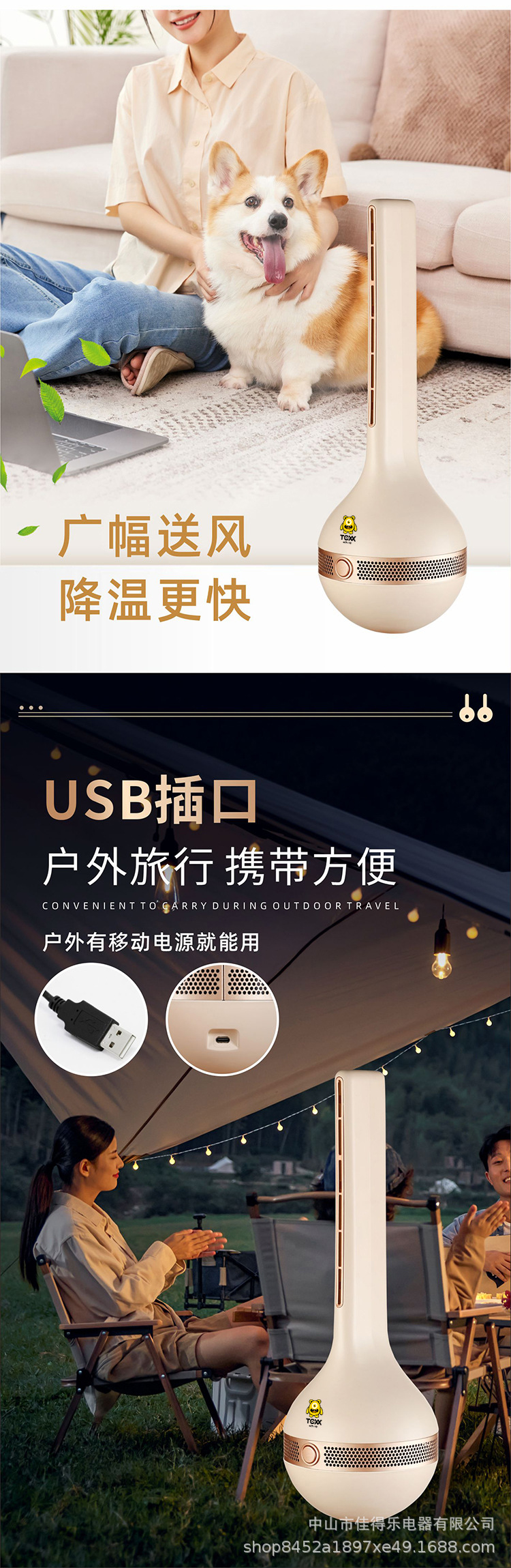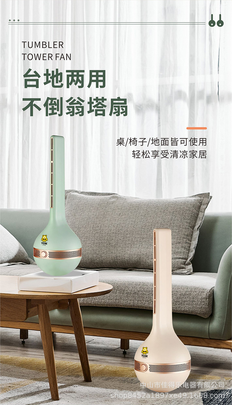 家用户外可用无叶塔扇静音柔风省电不倒翁桌面风扇小巧便携台地两