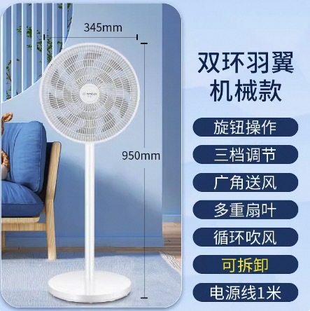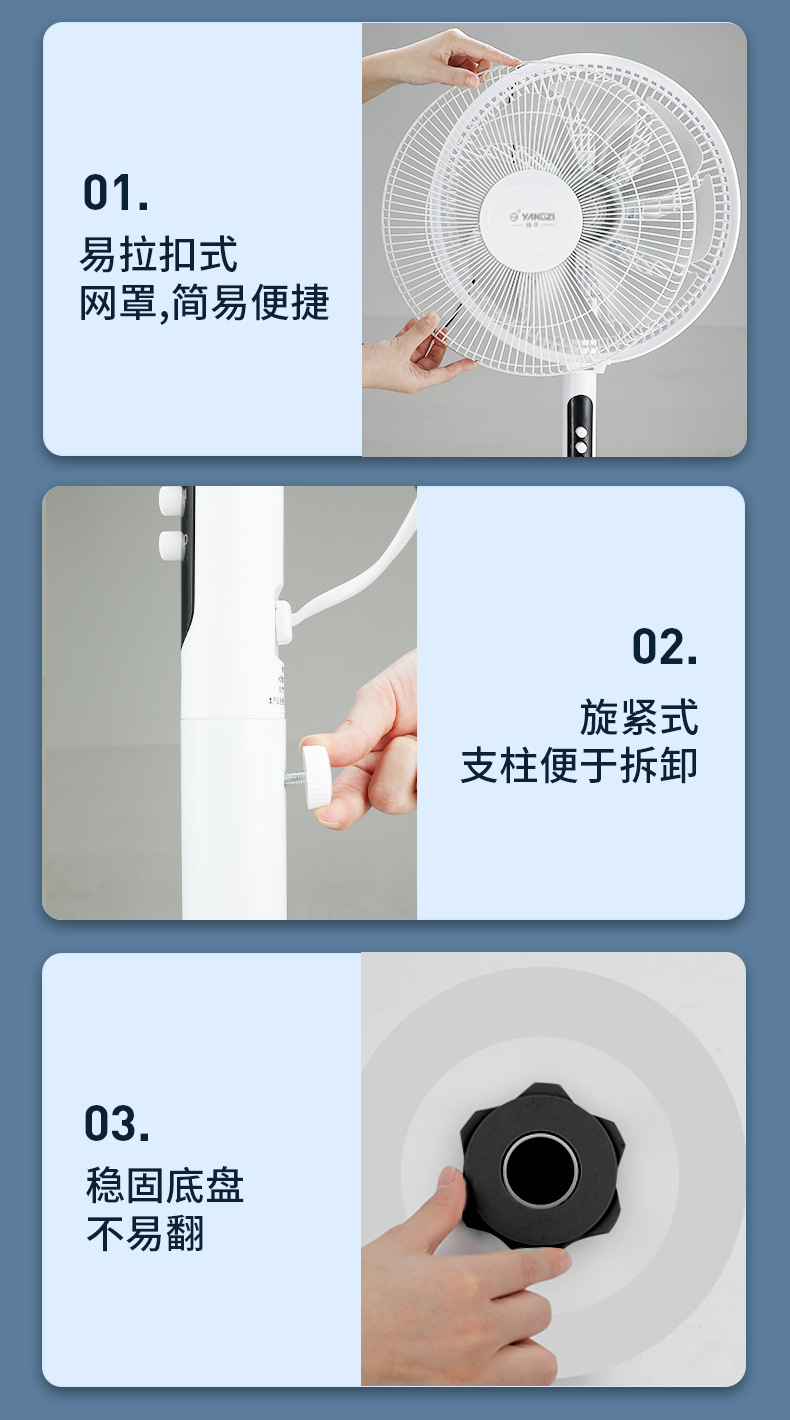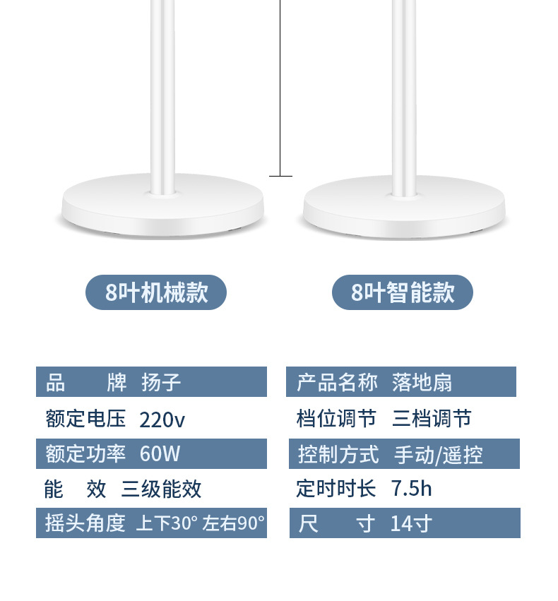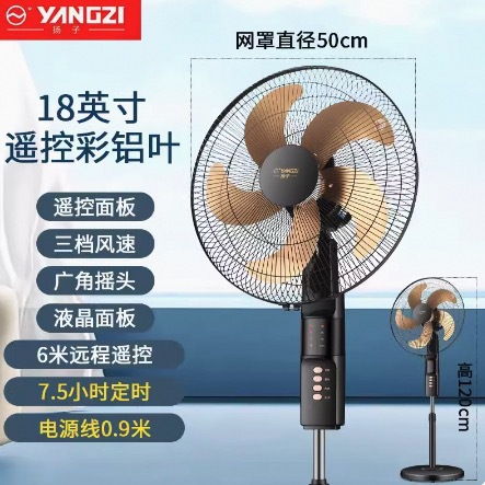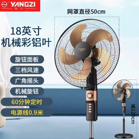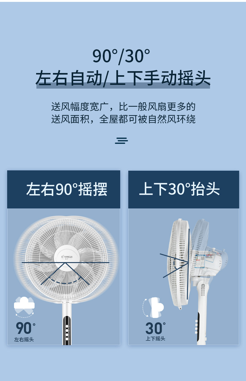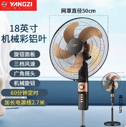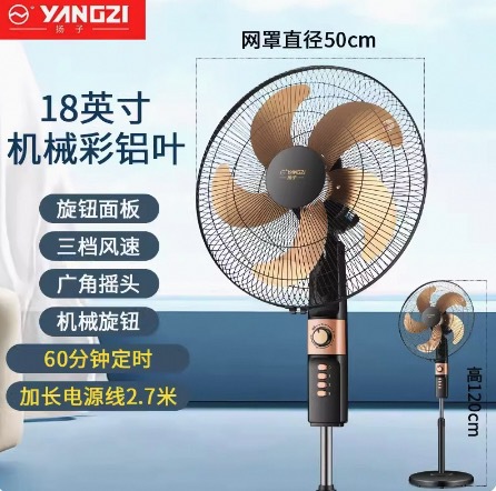 杨子16寸升降式电风扇家用落地扇学生宿舍办公室摇头静音立式电扇