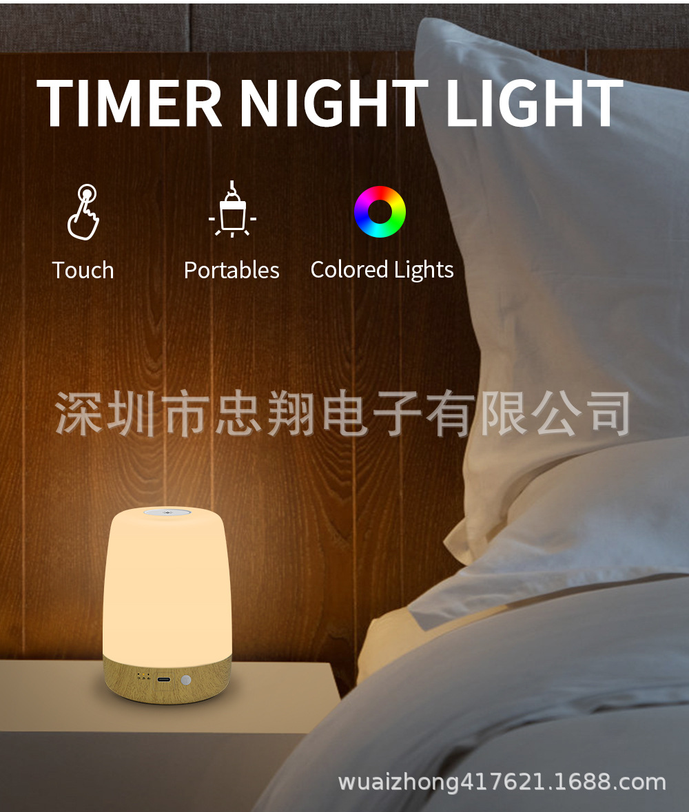 2023款木纹小夜灯批发创意卧室儿童定时伴睡礼品七彩氛围拍拍灯