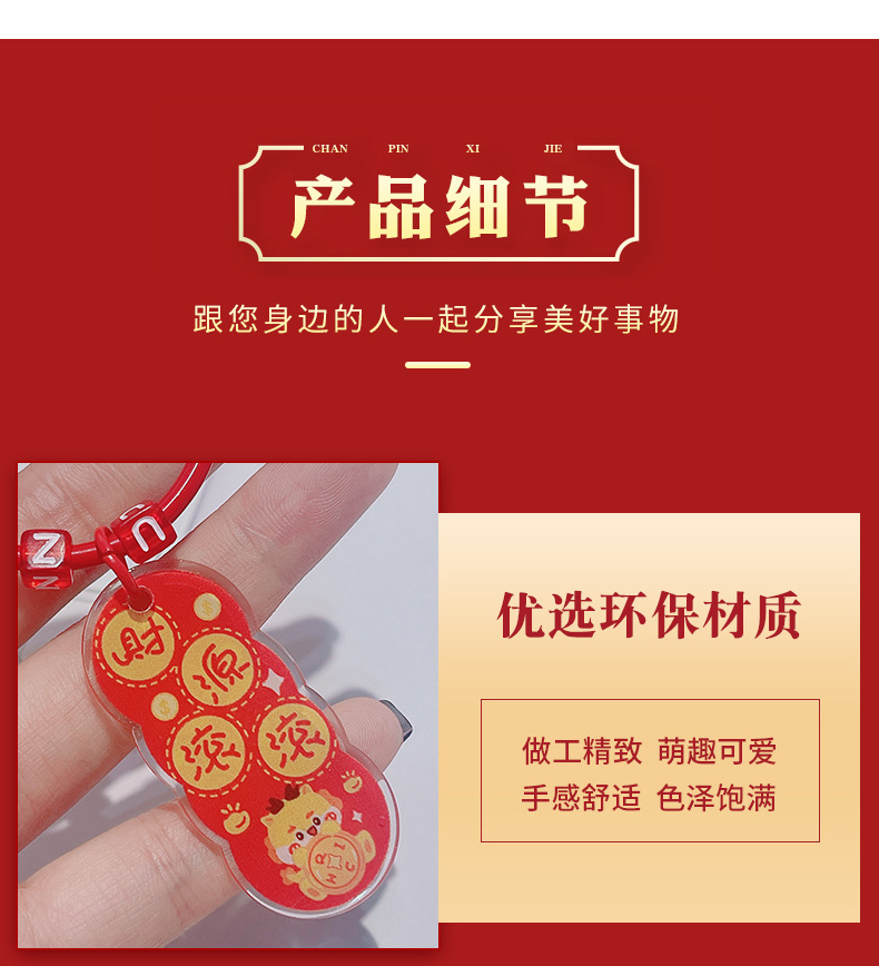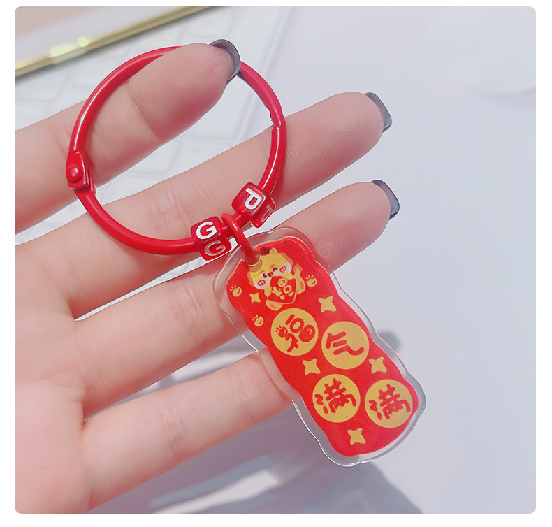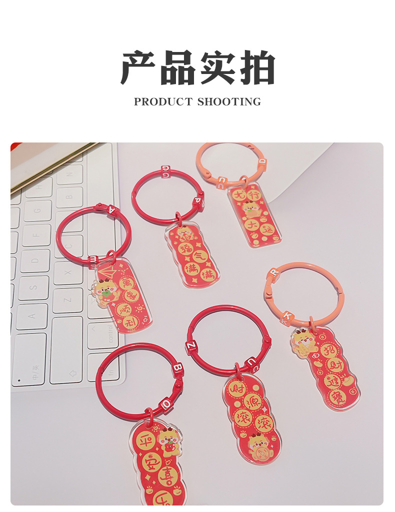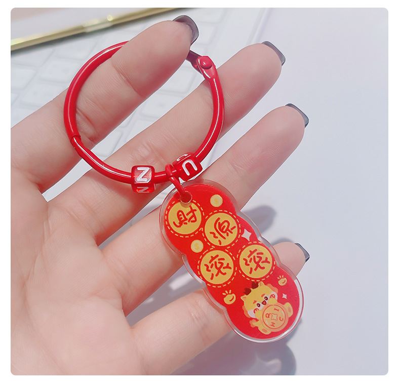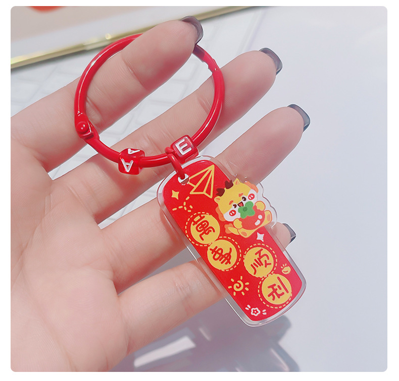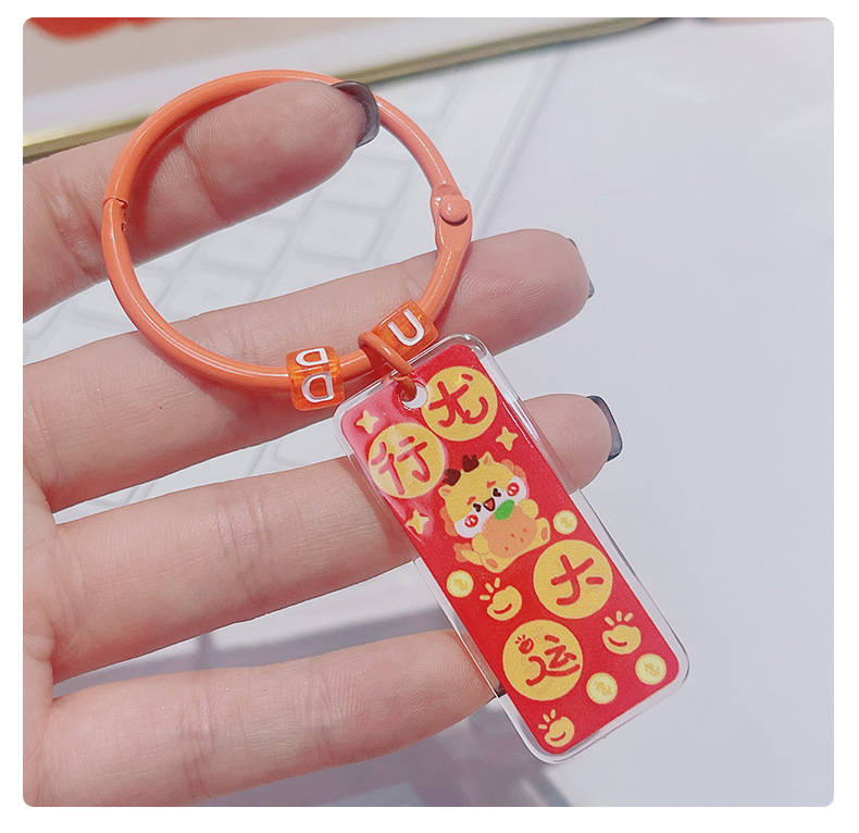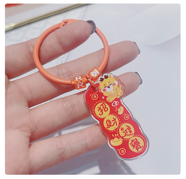 龙年双面祝福语文字吊牌亚克力钥匙扣挂件卡通书包挂饰新年小礼物