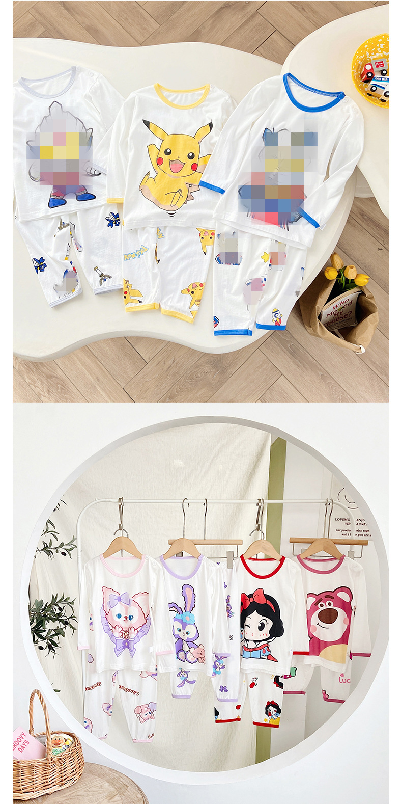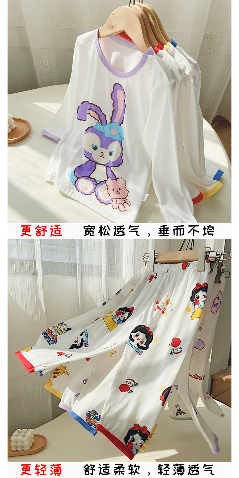 2024新款儿童睡衣夏季男女童竹纤维空调服薄款长袖宝宝家居服