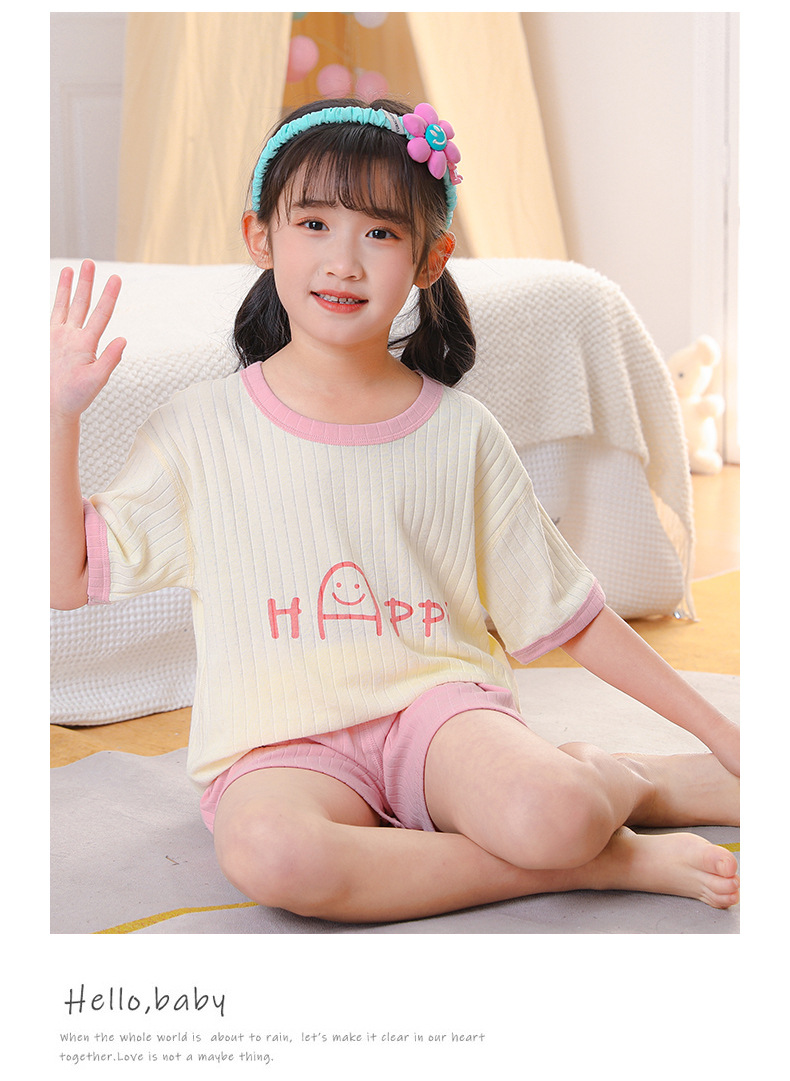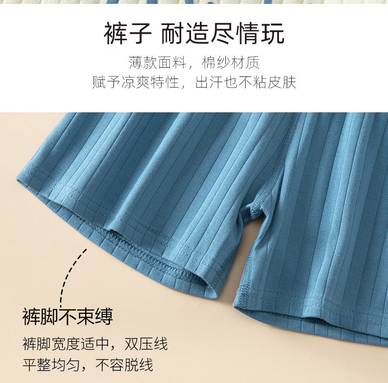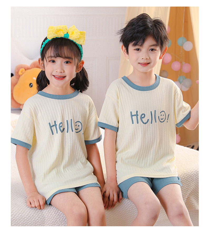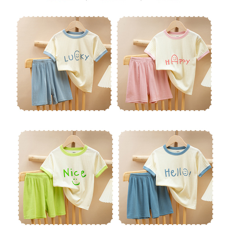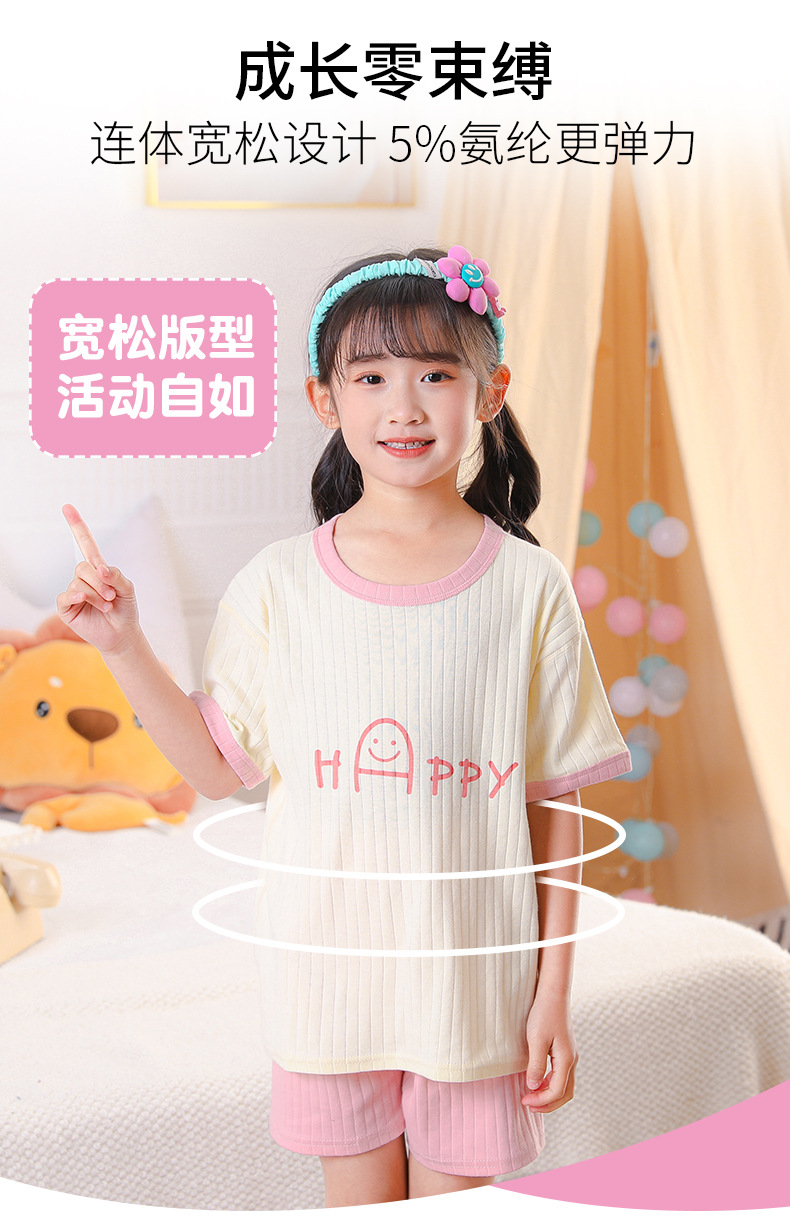 夏款儿童短袖短裤家居服男童睡衣宝宝女童莱卡棉无骨空调套装小孩