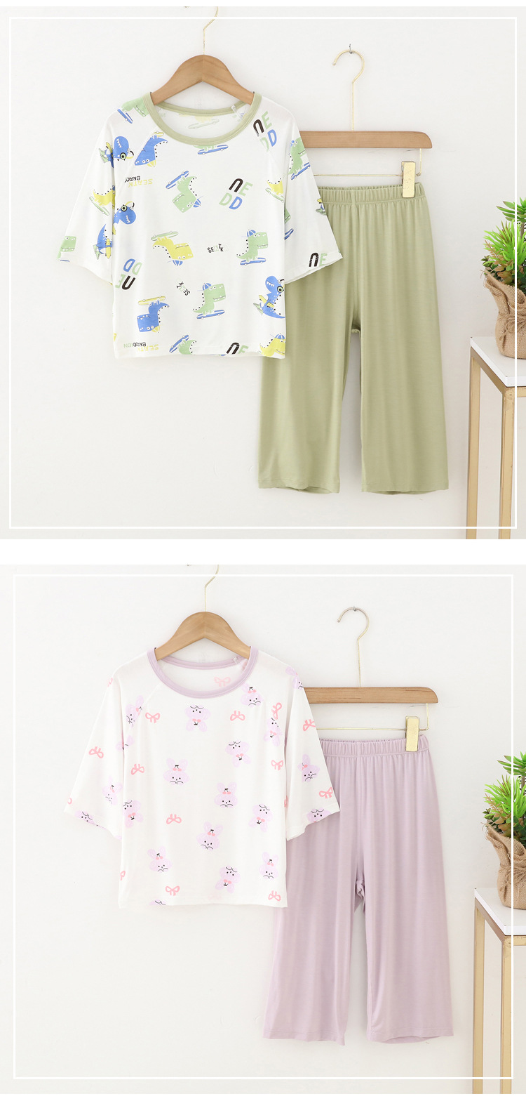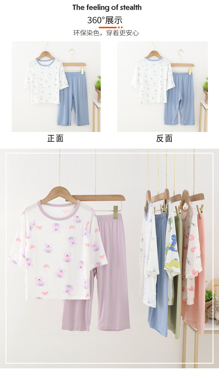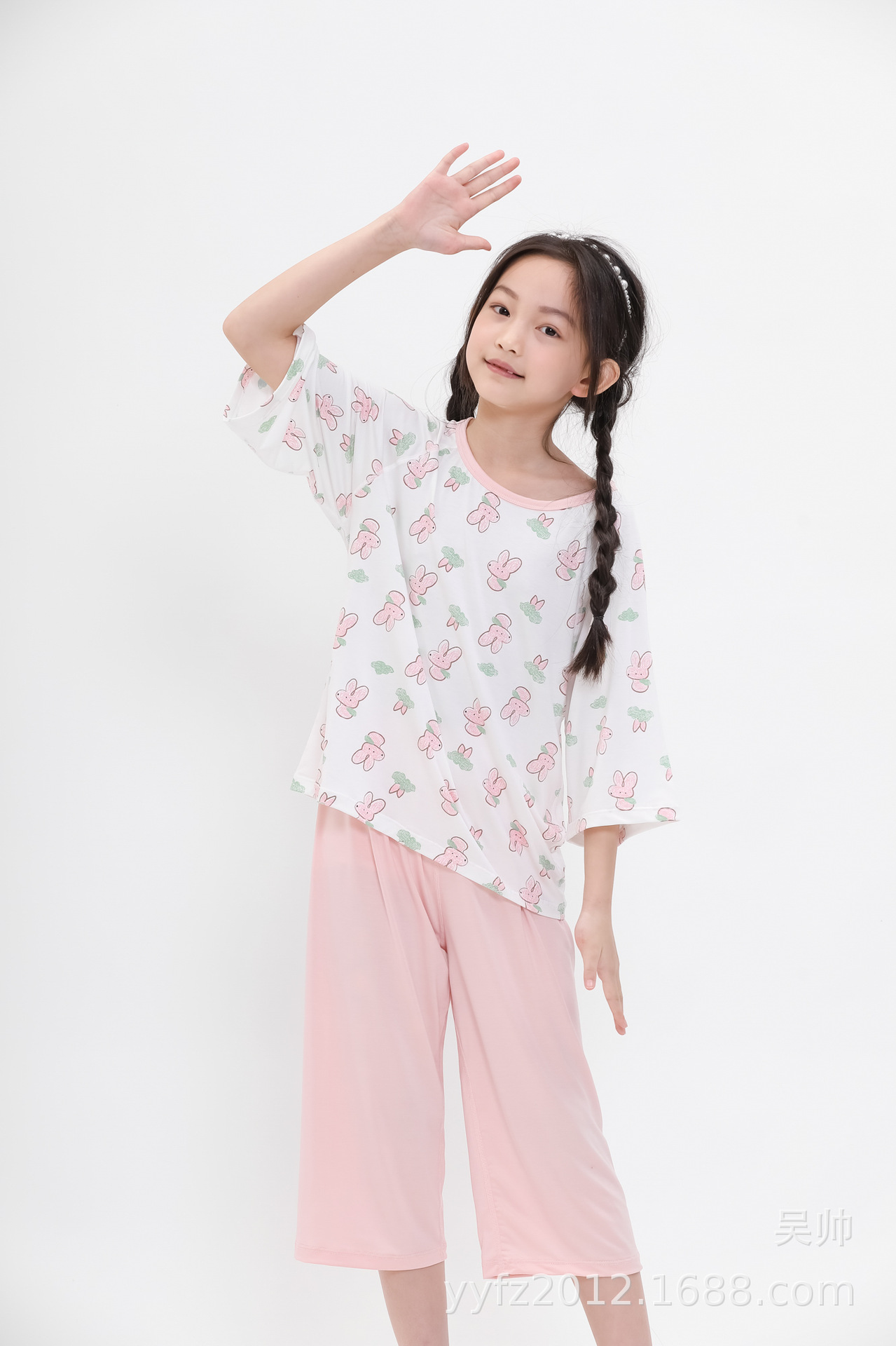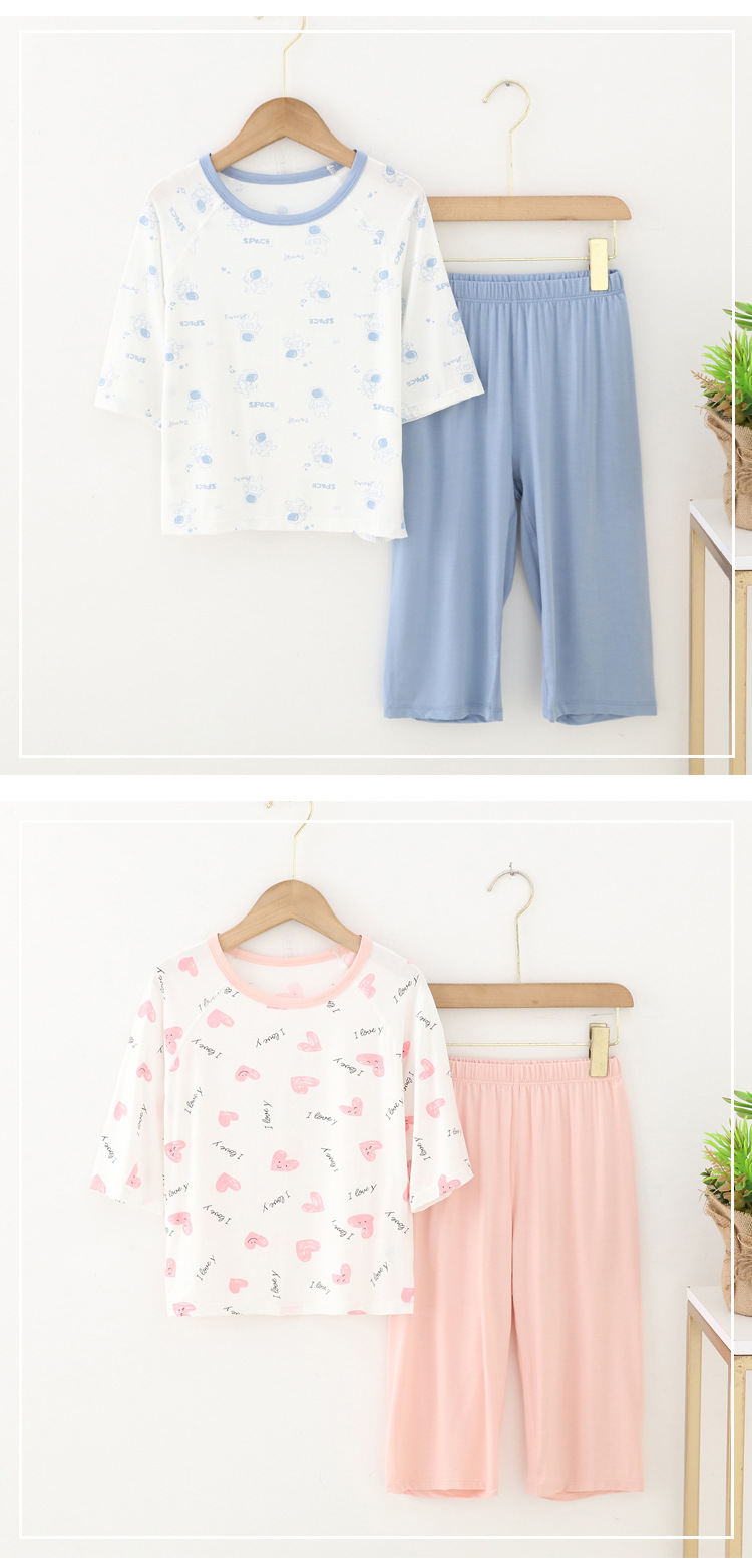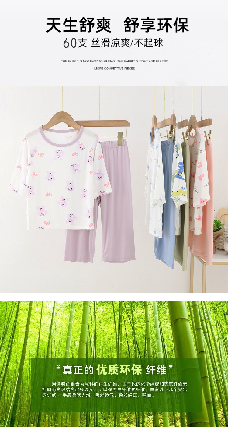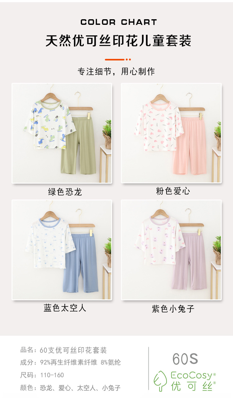 儿童优可丝家居服七分袖套装 印花无骨睡衣 男女童夏季薄款空调服