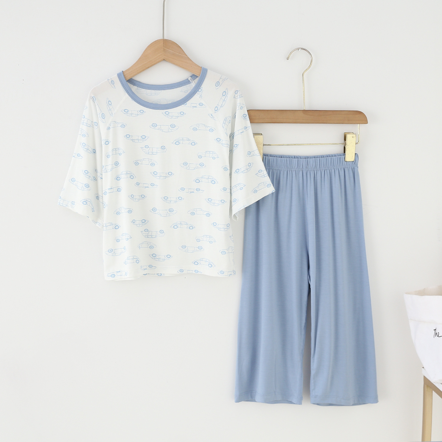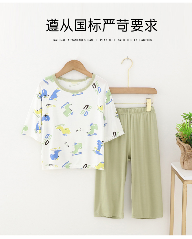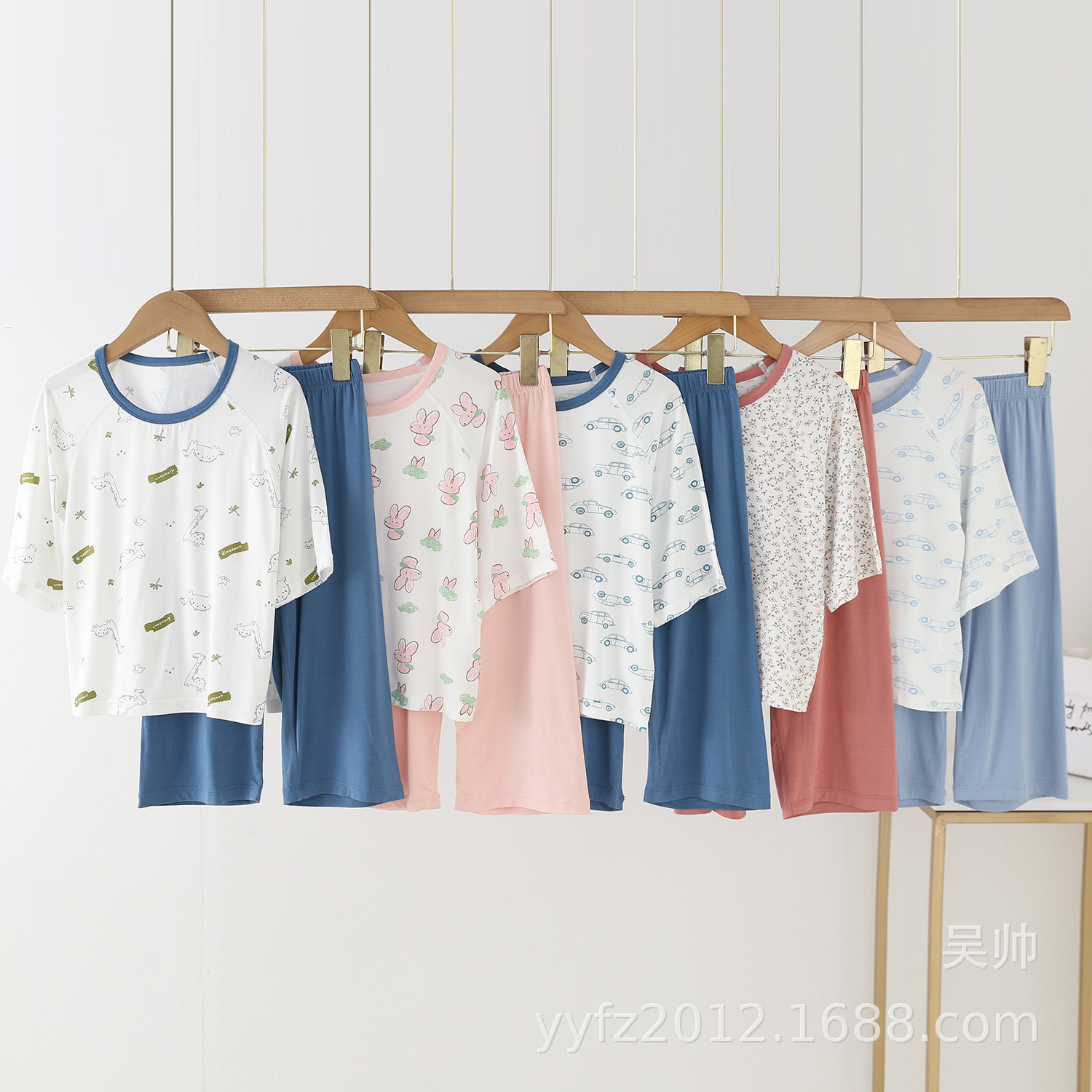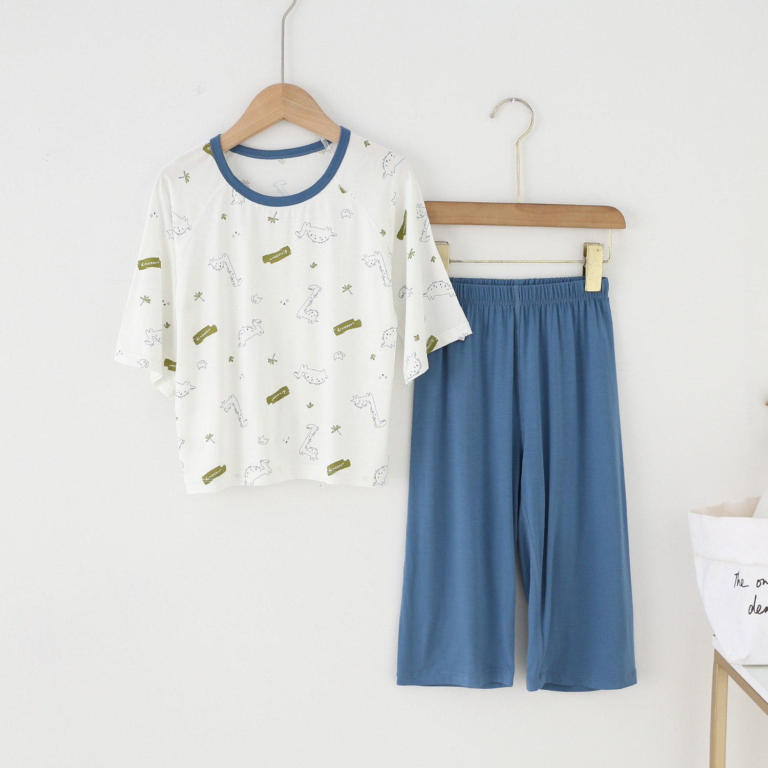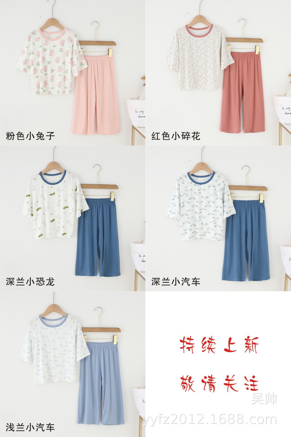 儿童优可丝家居服七分袖套装 印花无骨睡衣 男女童夏季薄款空调服