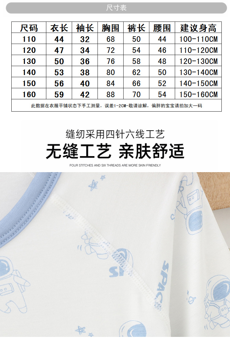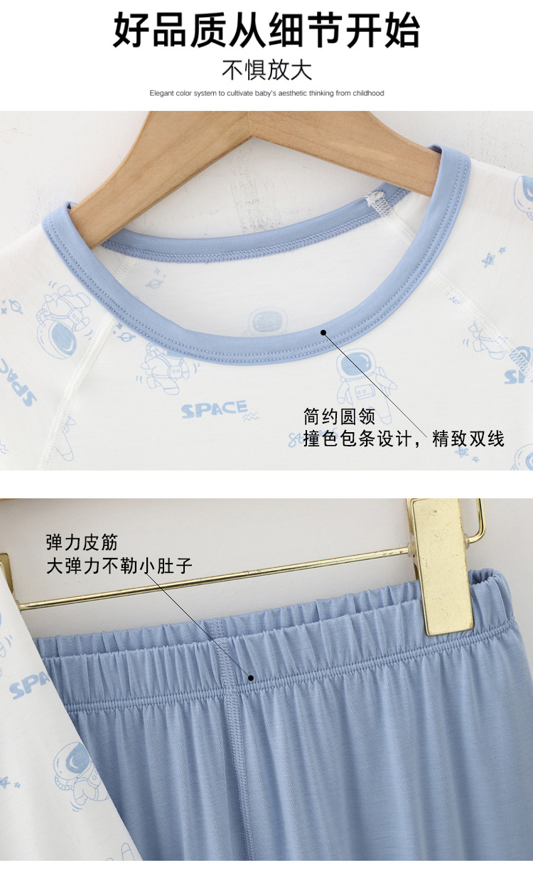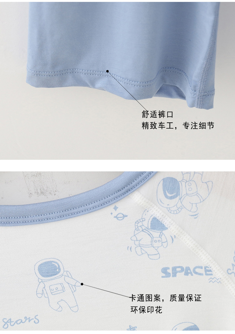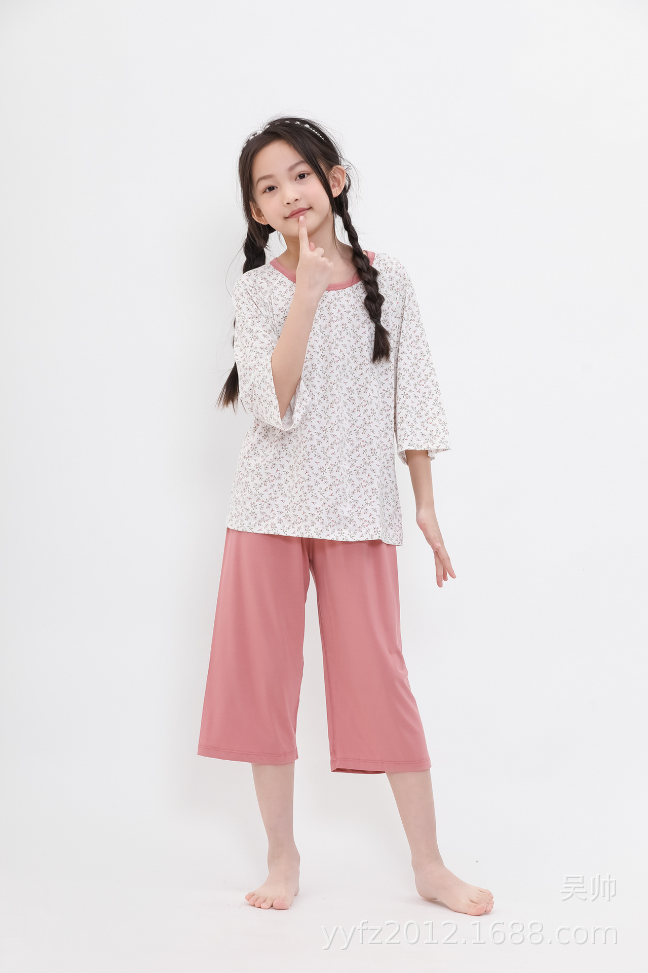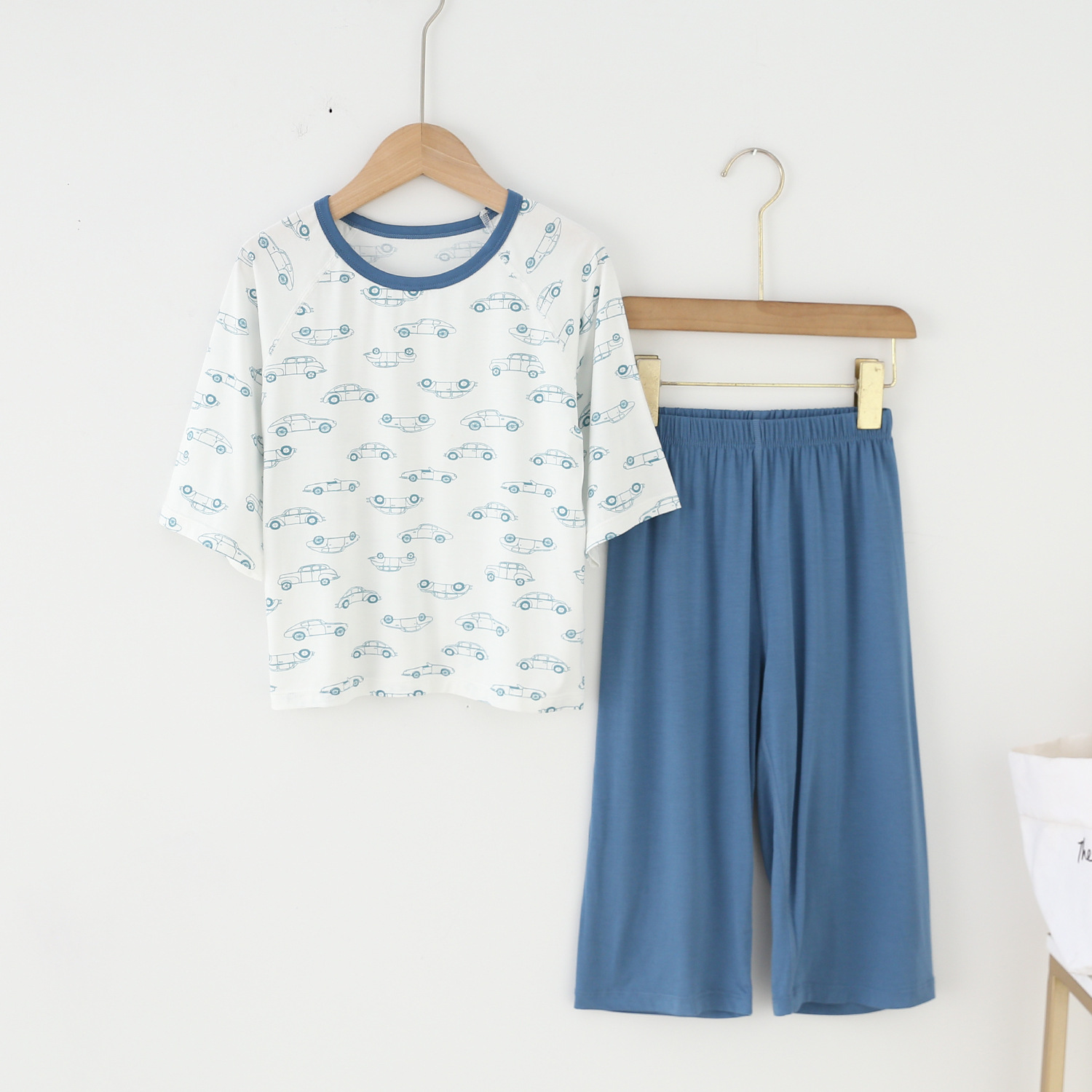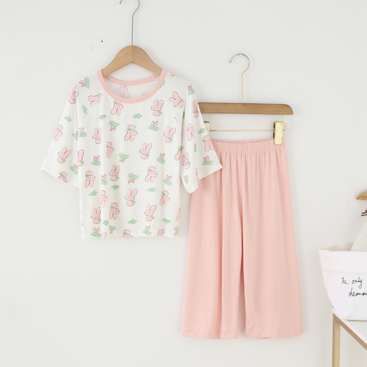 儿童优可丝家居服七分袖套装 印花无骨睡衣 男女童夏季薄款空调服