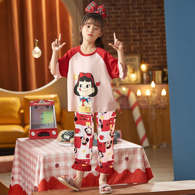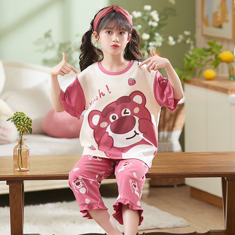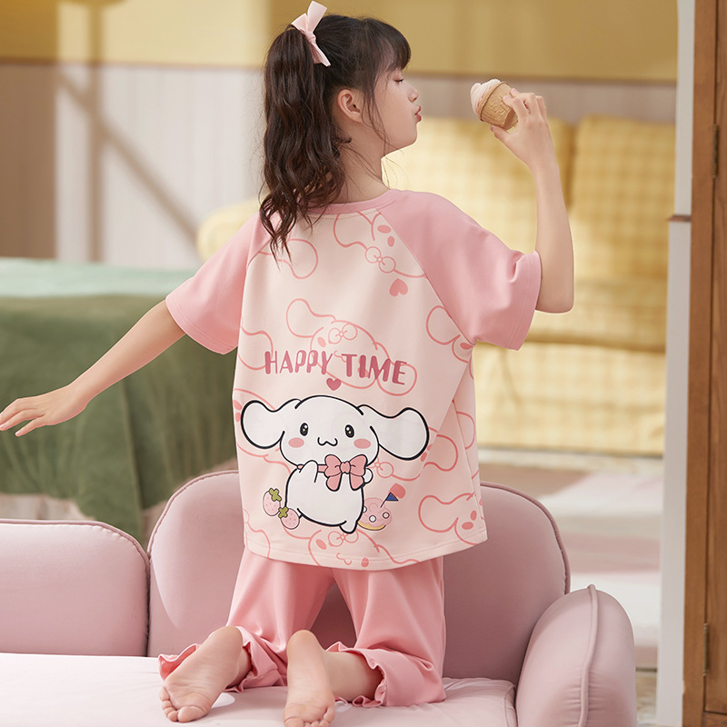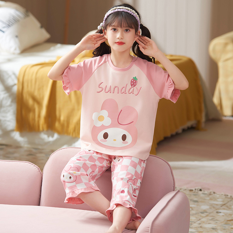 女童睡衣夏季七分裤纯棉家居服儿童短袖库洛米夏天100%棉薄款套装