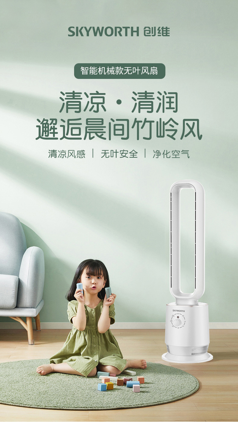 创维塔扇智能电风扇立式落地风扇转页静音家用无叶扇夏季礼品批发