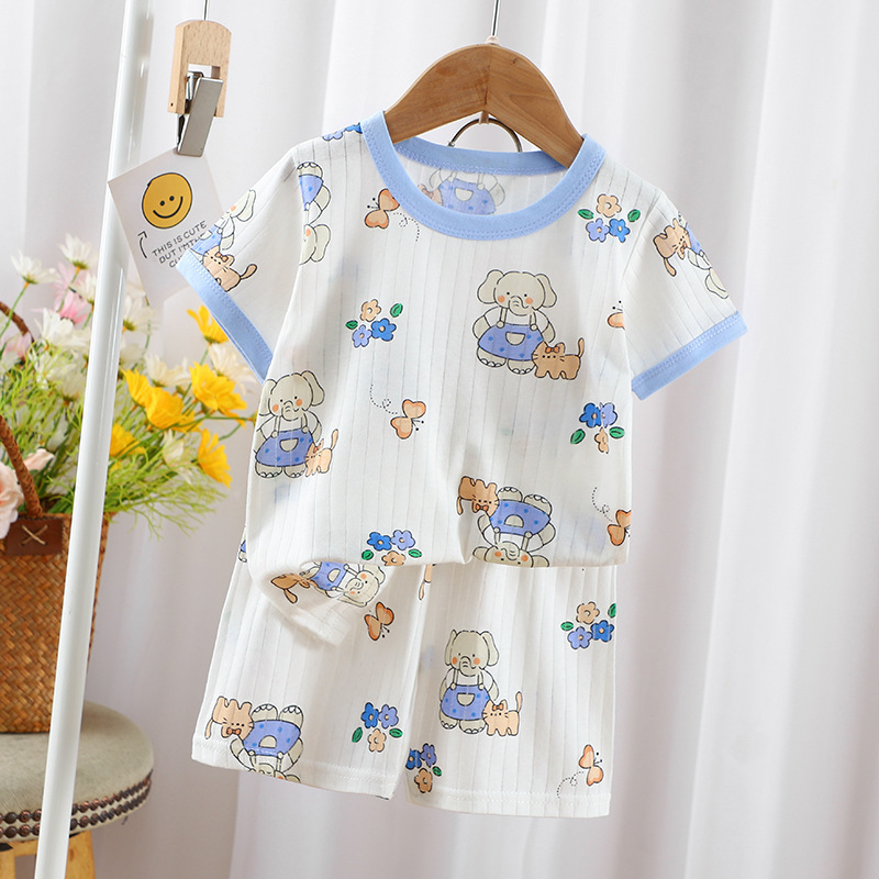 儿童夏季短袖套装男女宝宝T恤短裤婴儿纯棉卡通睡衣薄款童装