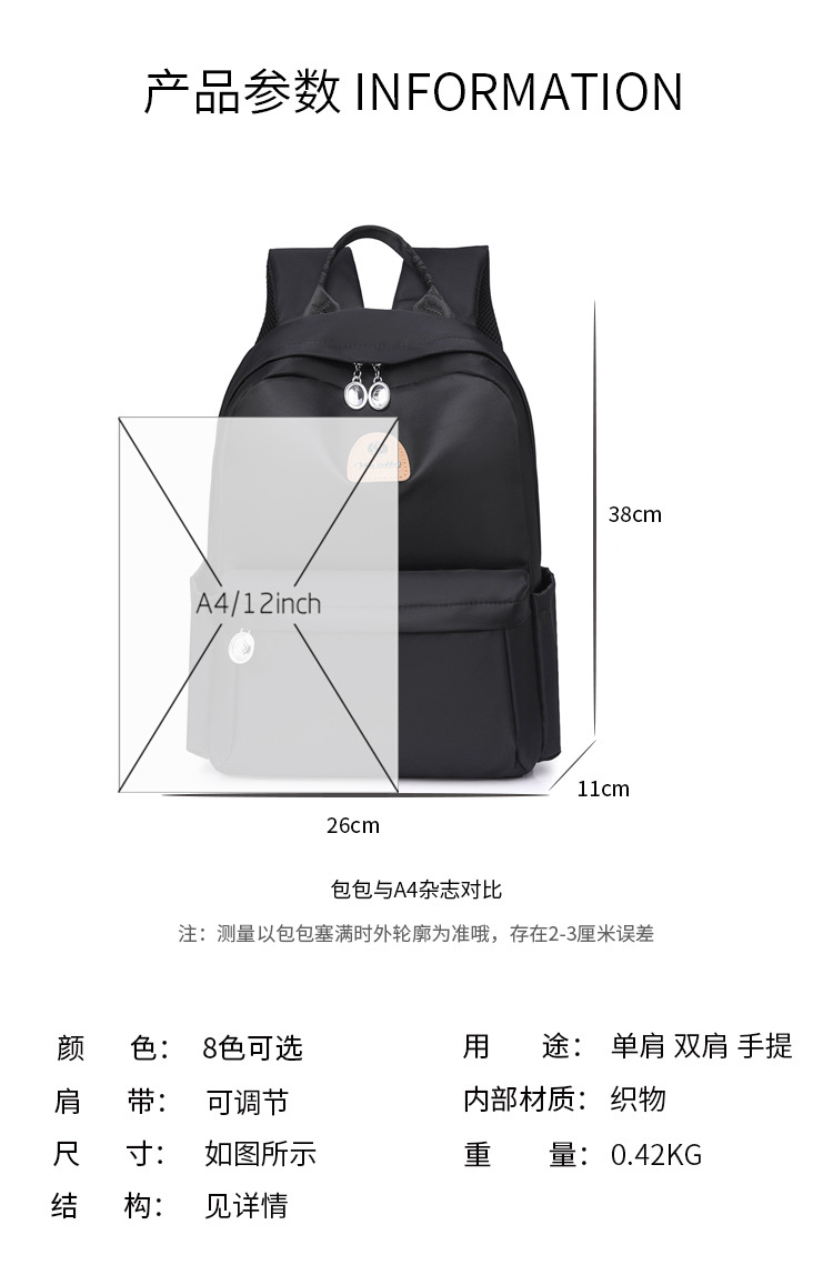 时尚女士双肩包户外旅行包学生书包2024新款休闲尼龙布包