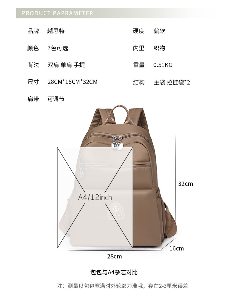 包包女2024新款尼龙布女士双肩户外休闲旅行跨境双背包