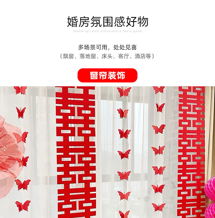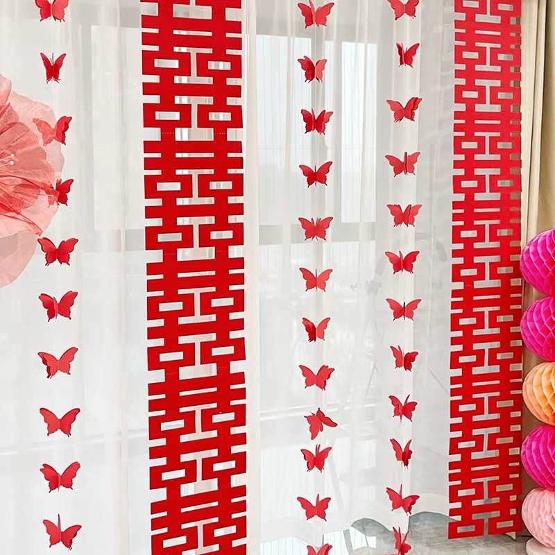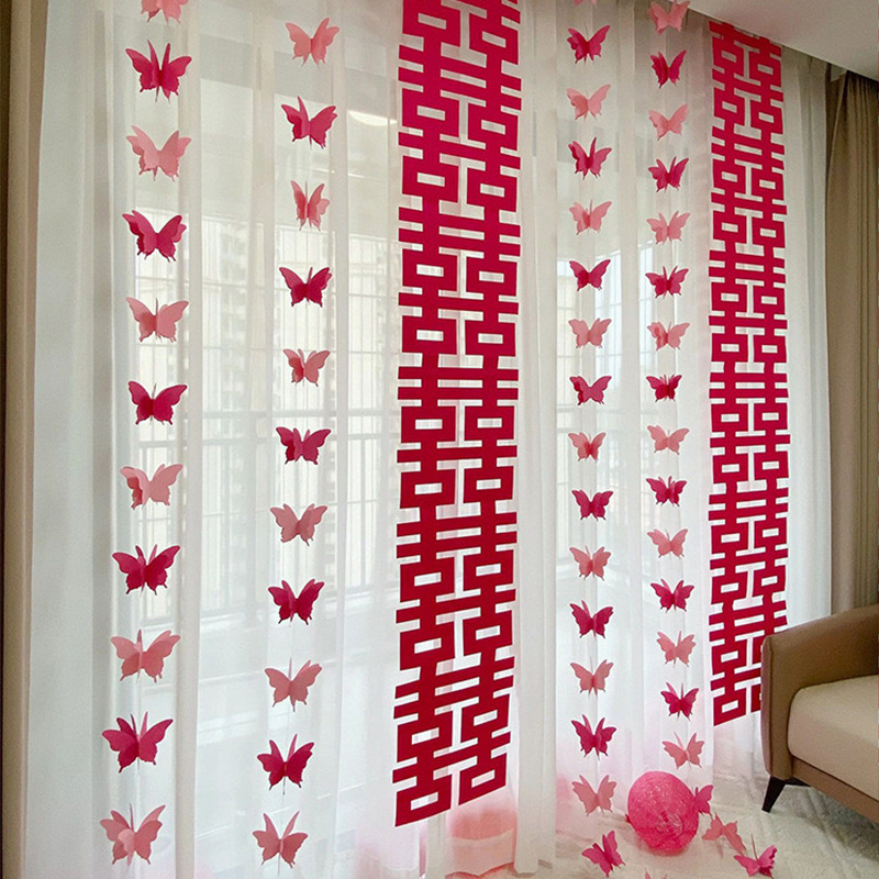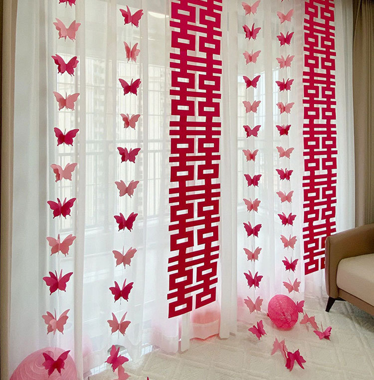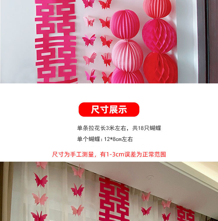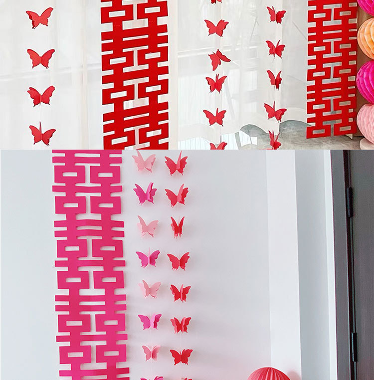 结婚立体蝴蝶纸拉花装饰节庆派对长条喜字婚房布置折纸窗帘挂件