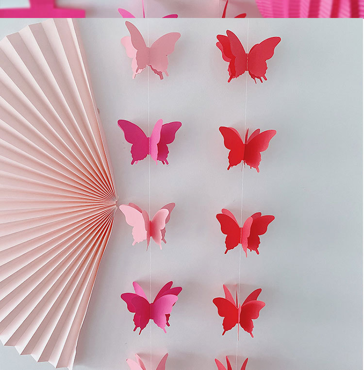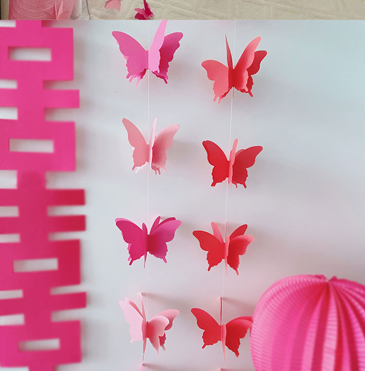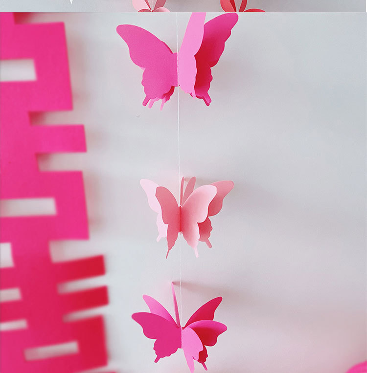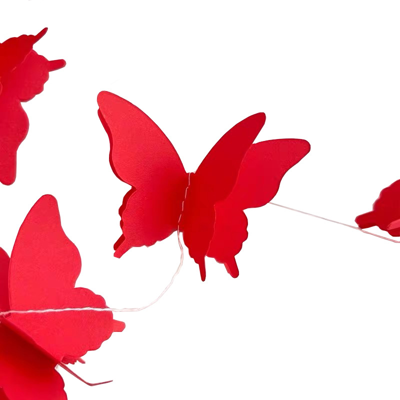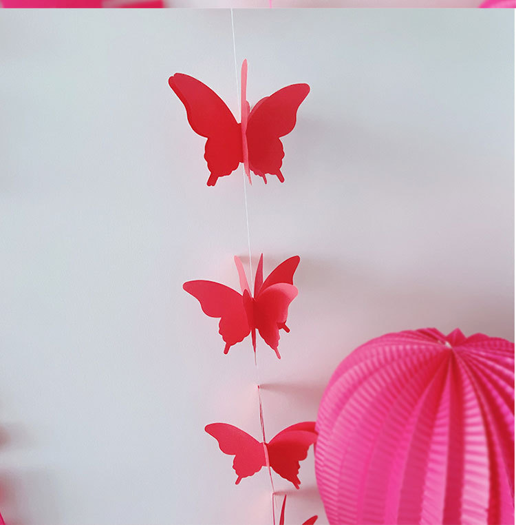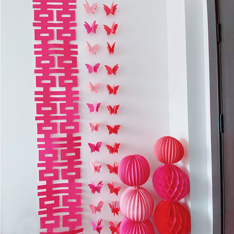 结婚立体蝴蝶纸拉花装饰节庆派对长条喜字婚房布置折纸窗帘挂件