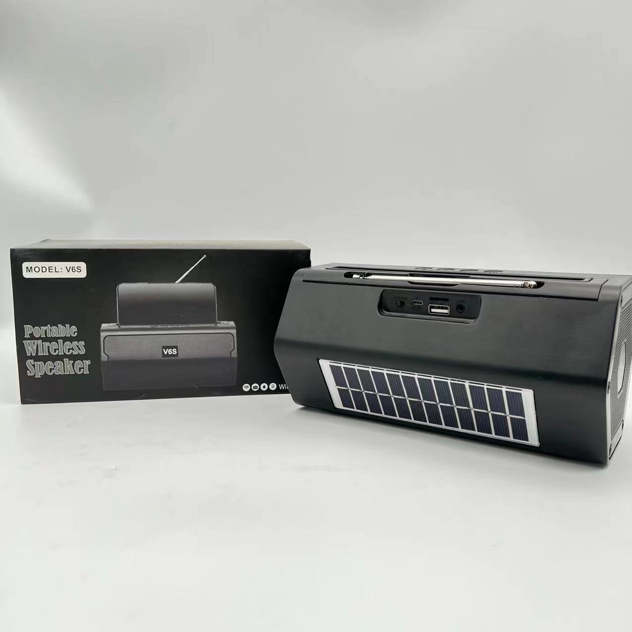 V6S太阳能充电音箱蓝牙低音炮户外便携手提收音机插卡音响非洲热