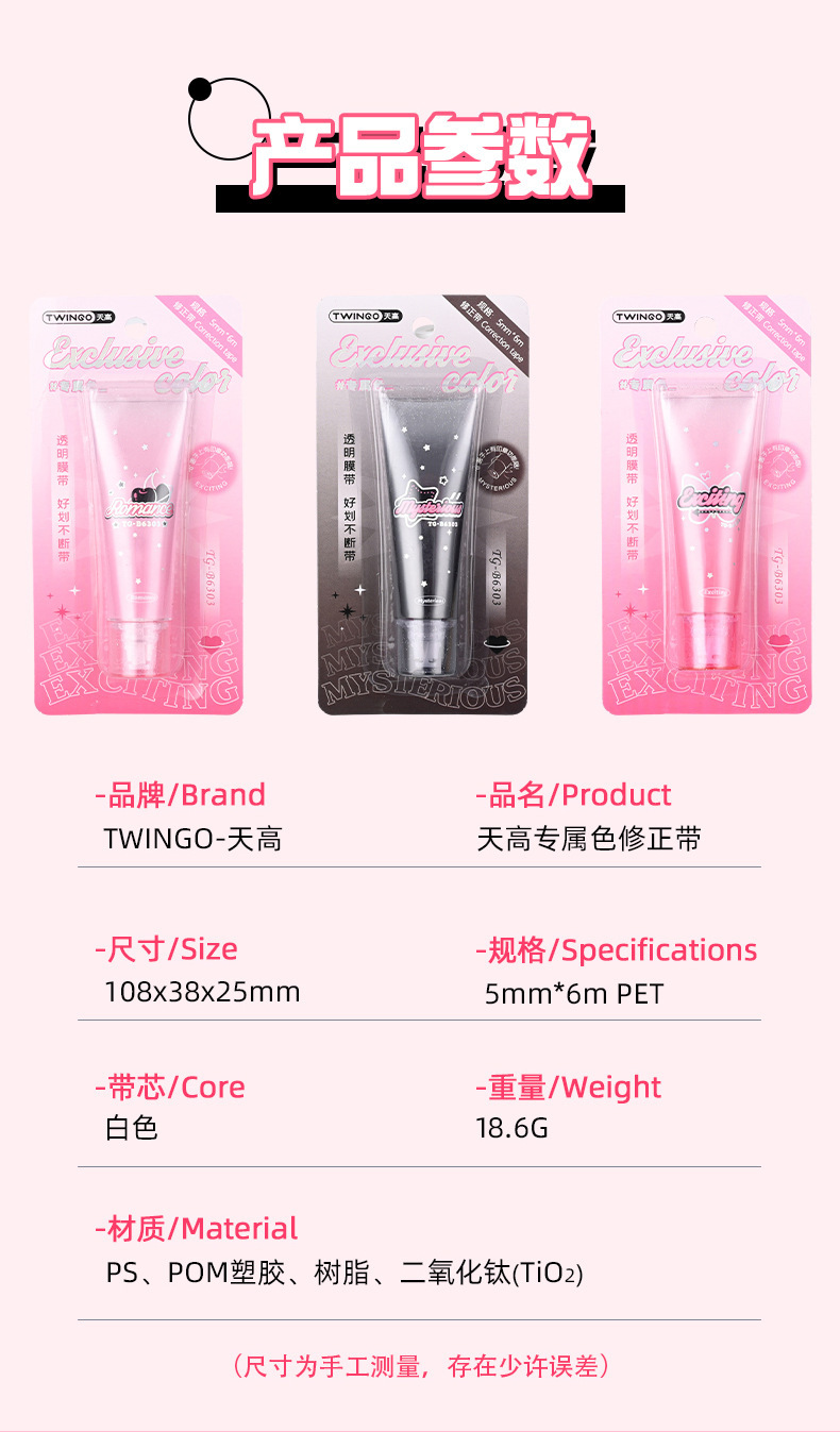 天高厂家批发美妆修正带芭比粉文具护手霜改错带高颜值少女心学生