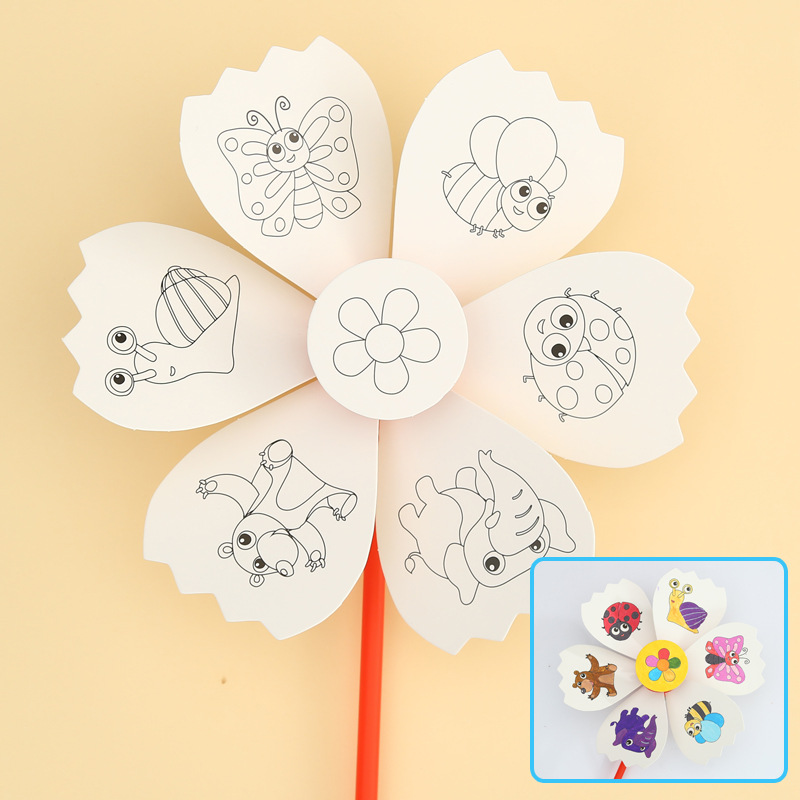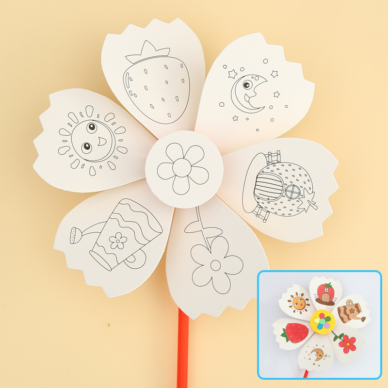 空白绘画风车儿童diy手工制作材料包幼儿园创意美术涂鸦涂色玩具