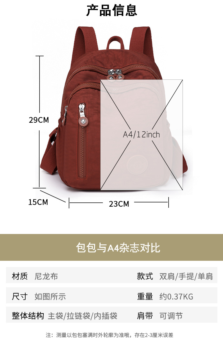 女士双肩包女包尼龙布包包女时尚女大学生出行背包