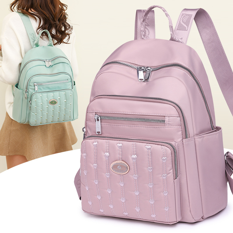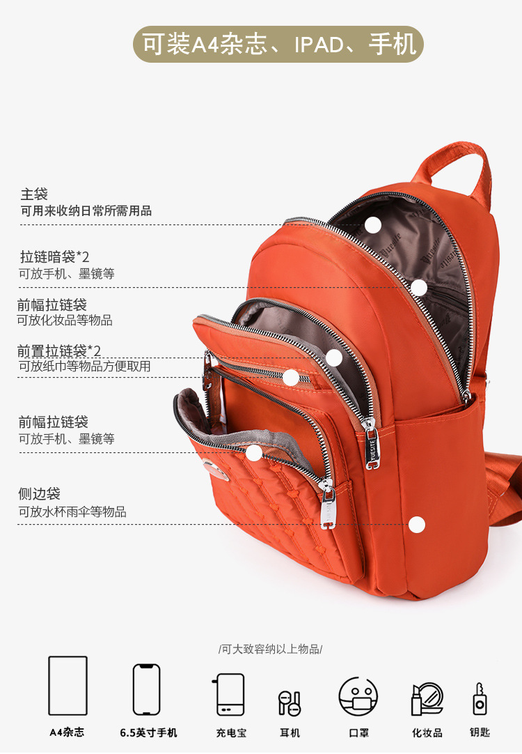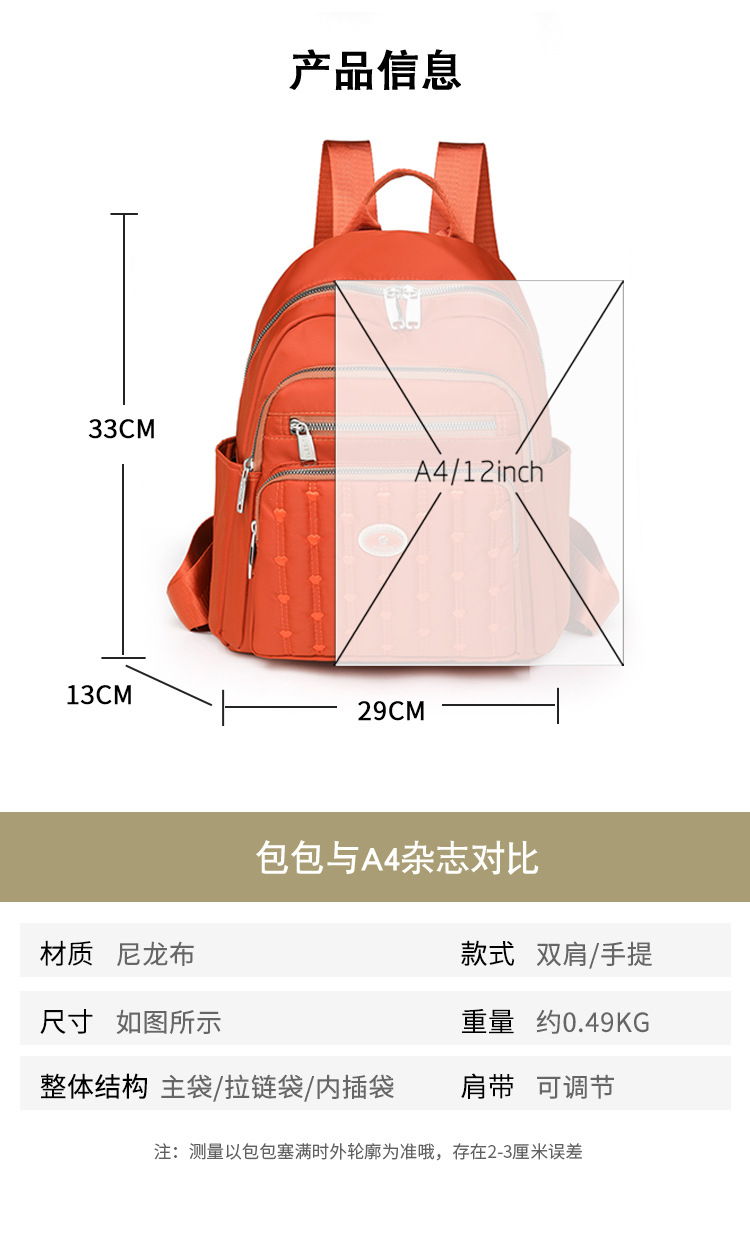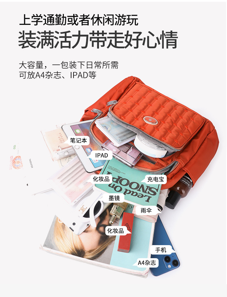 新款2024休闲女包时尚简约旅游背包通勤尼龙面料双肩包