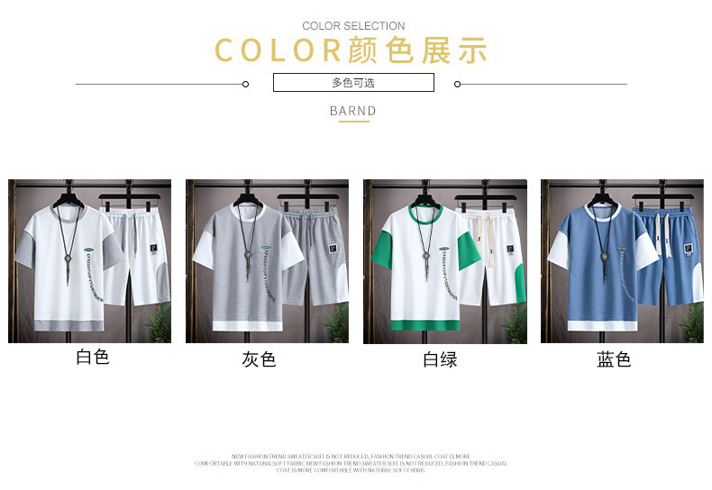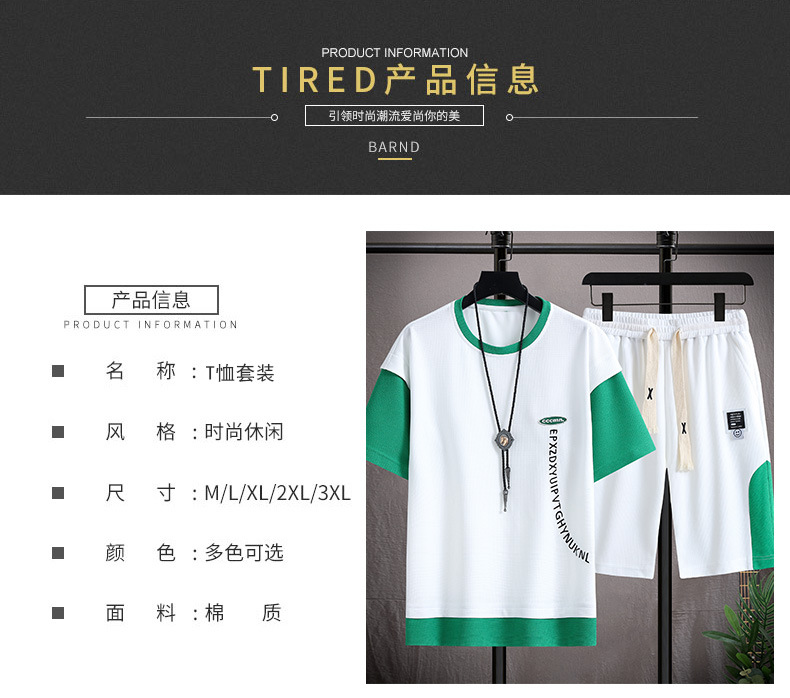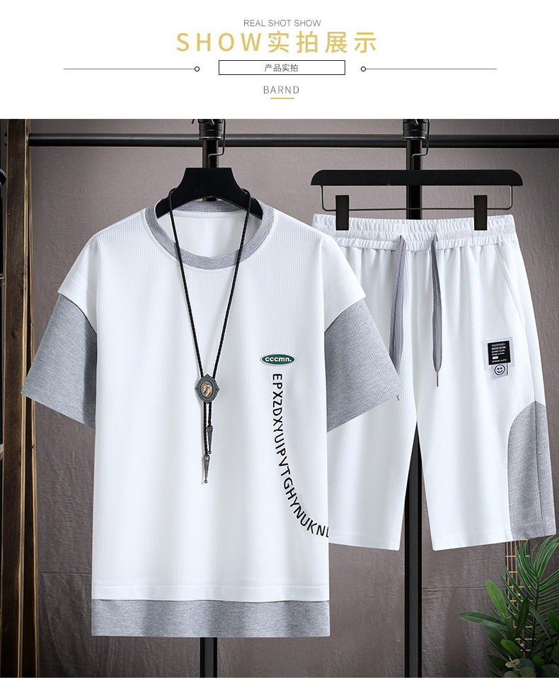 大码短袖t恤男休闲运动套装夏季薄款宽松百搭运动长裤两件套男士