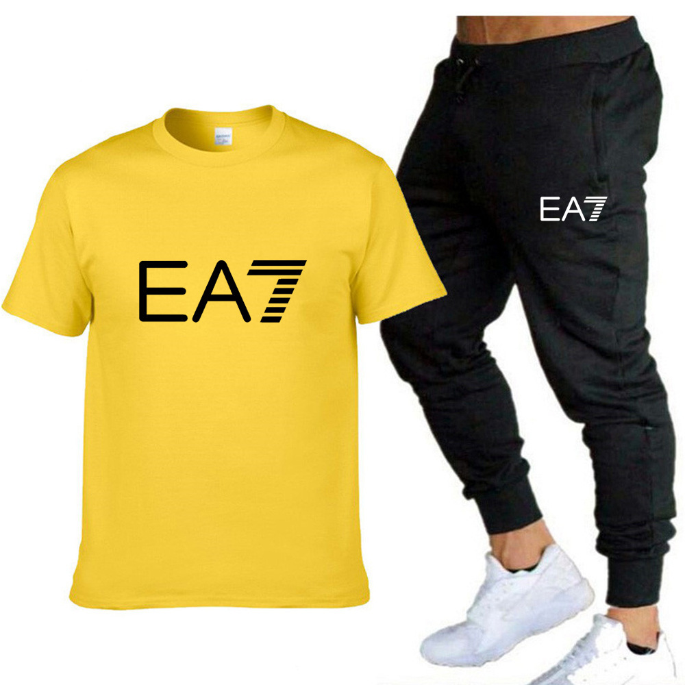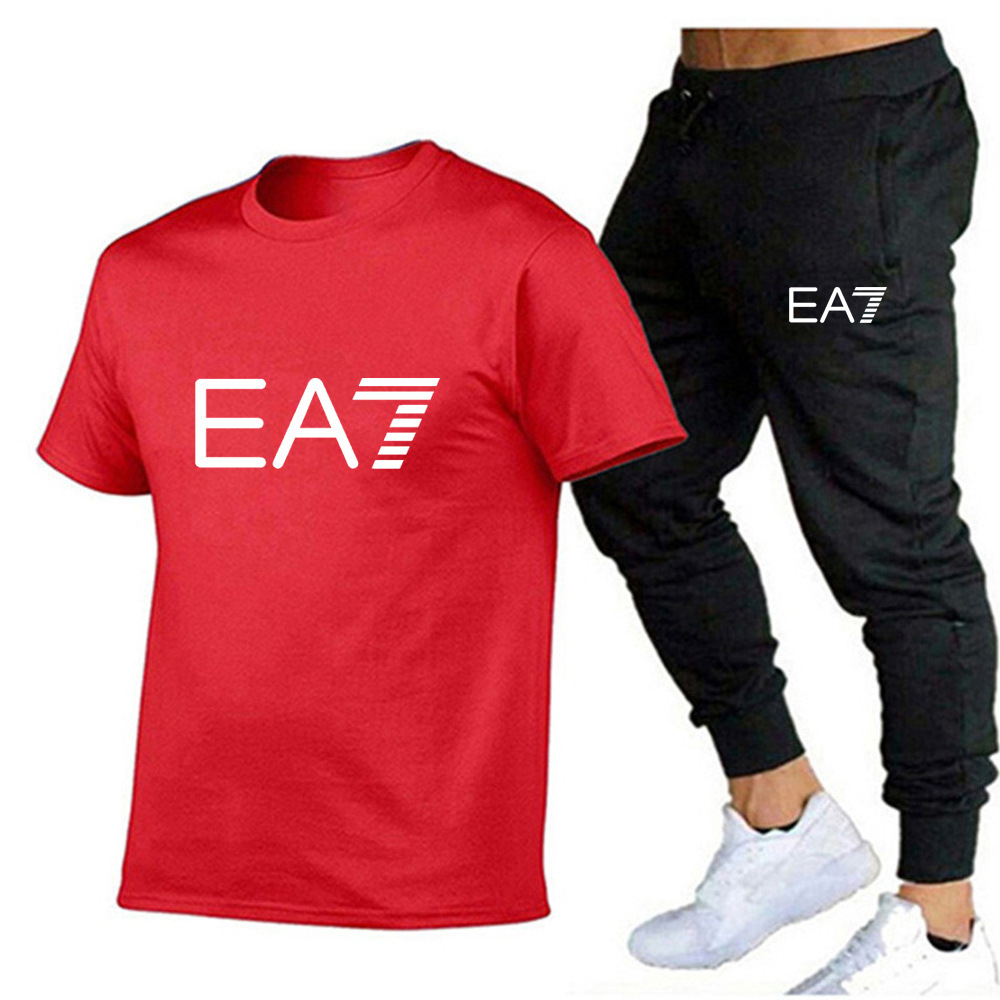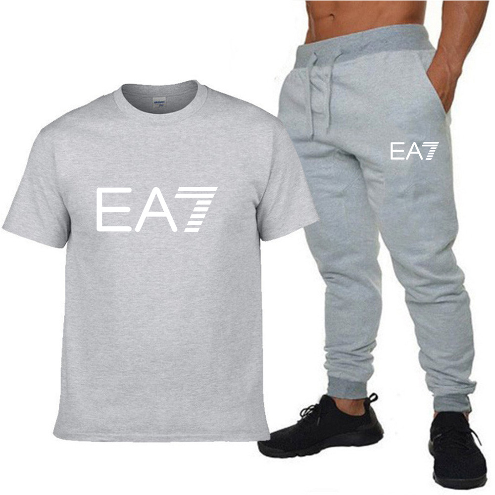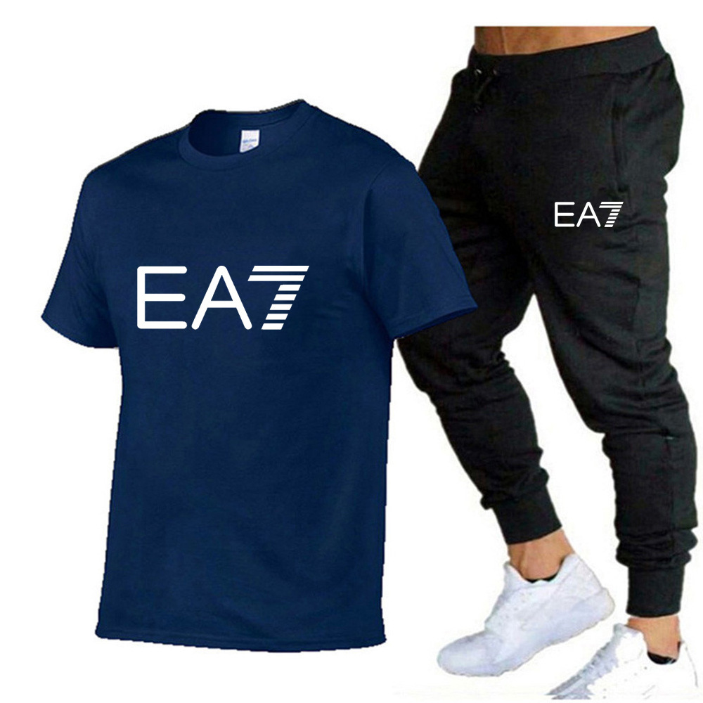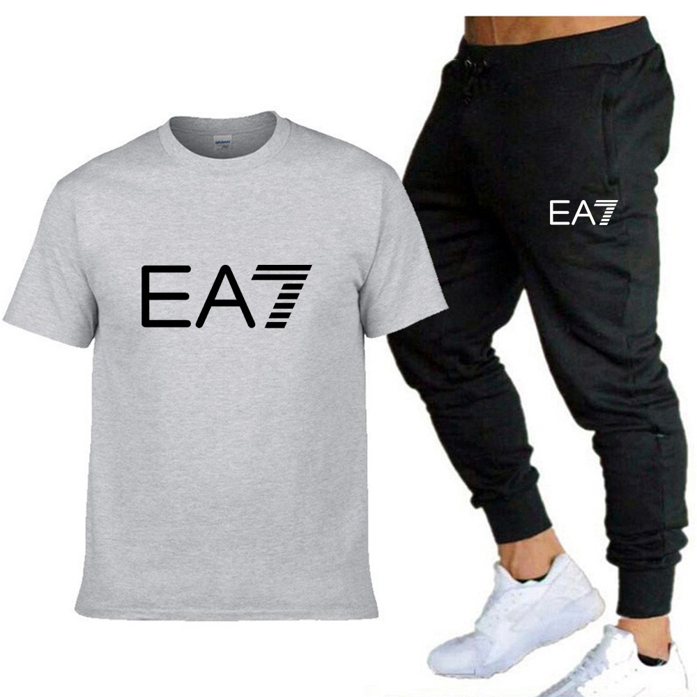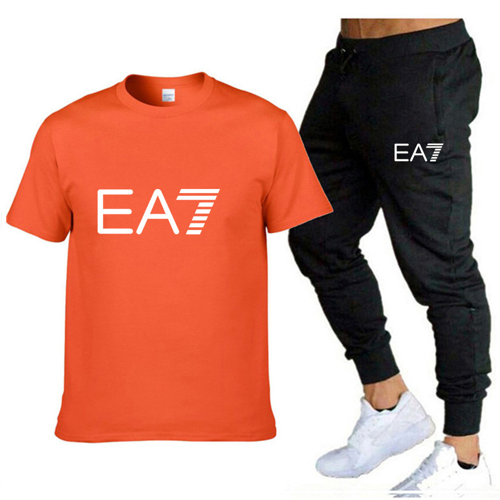新款潮牌跨境 字母印花休闲运动服T恤套装男女T恤+长裤两件套
