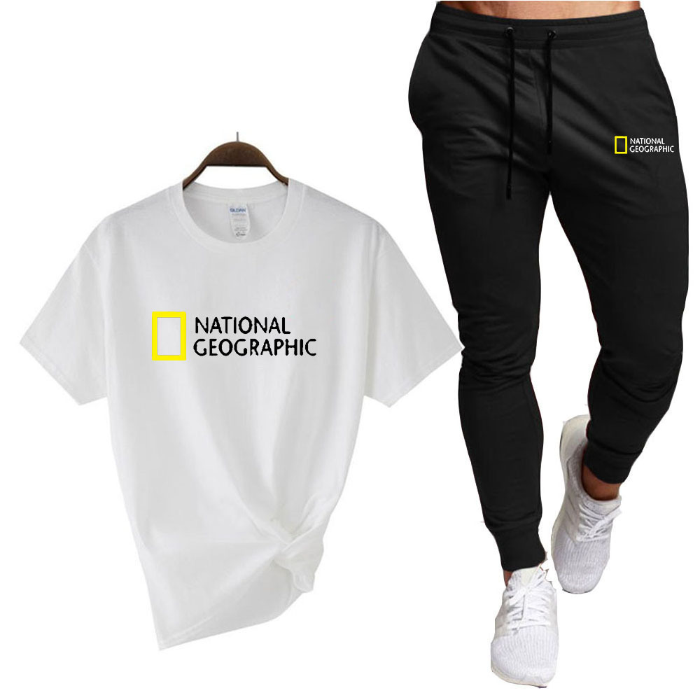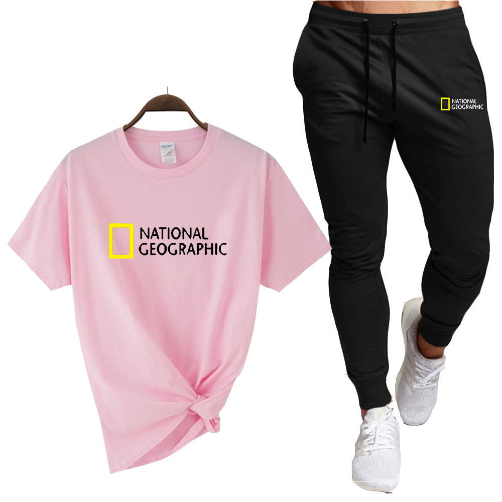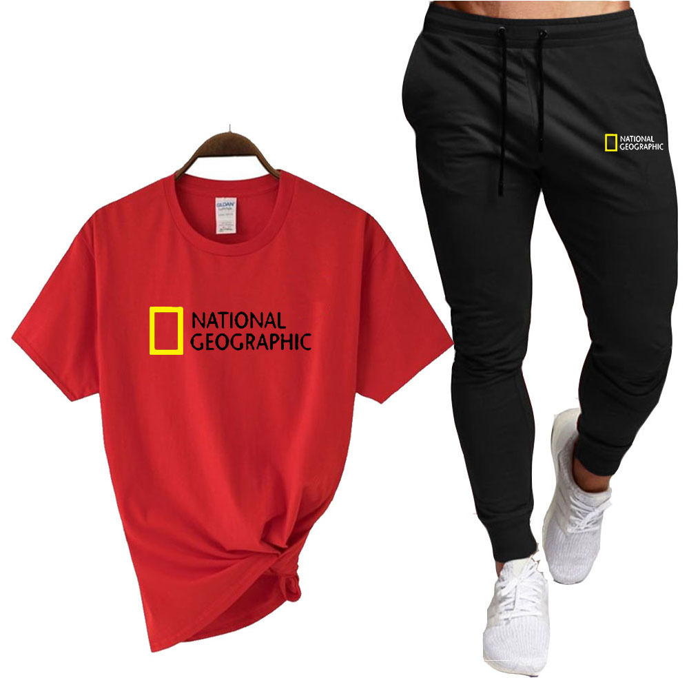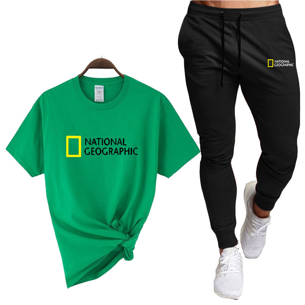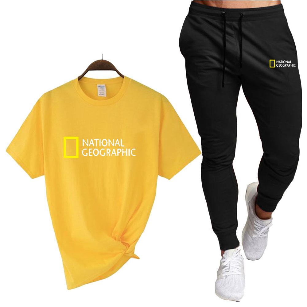 跨境热销男士棉质圆领短袖+长裤套装夏季男装T恤休闲运动套装现货