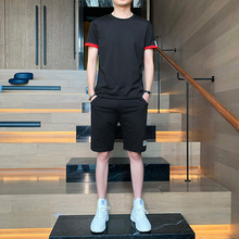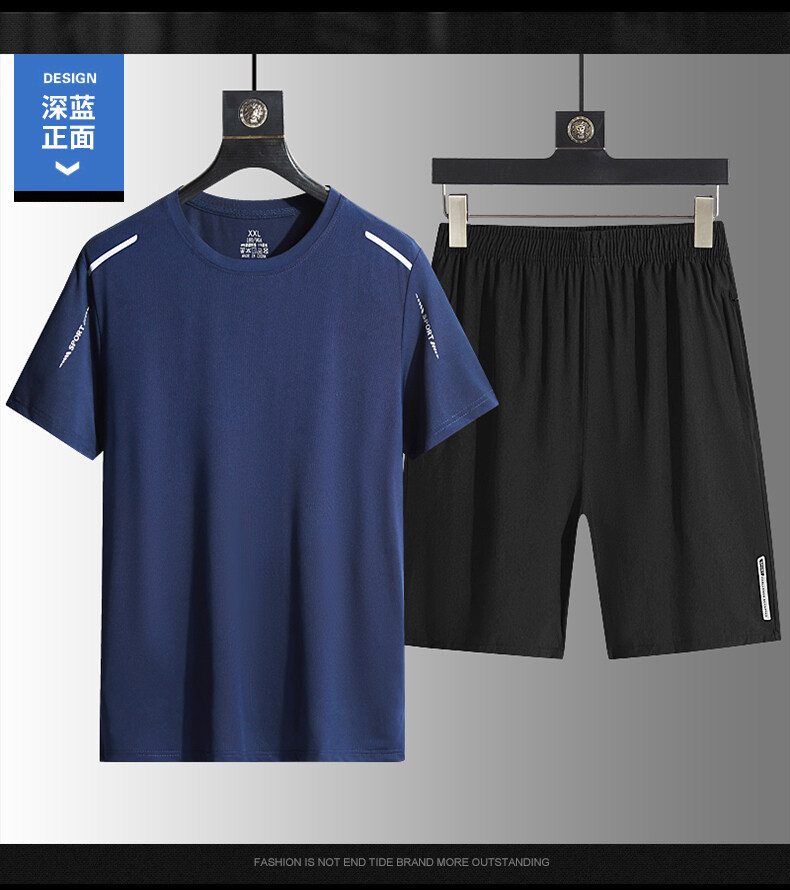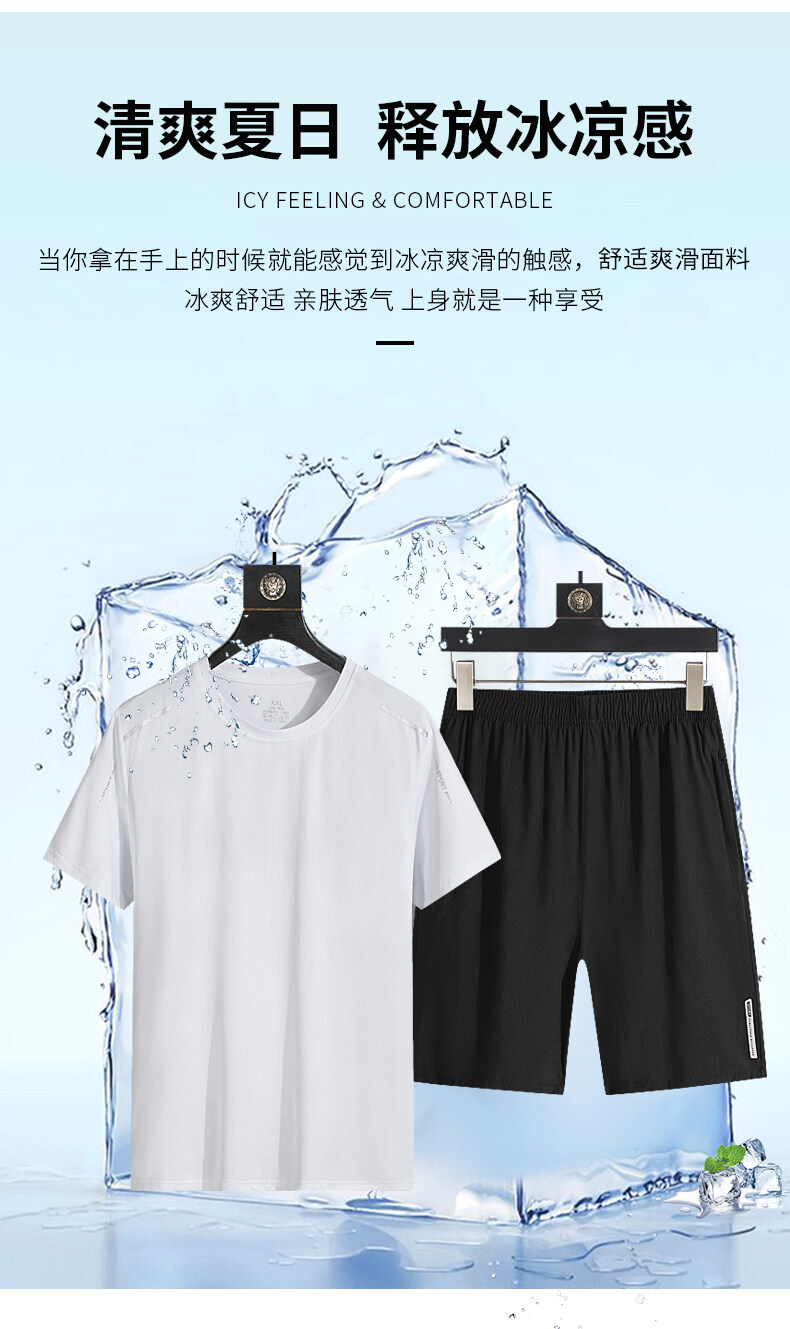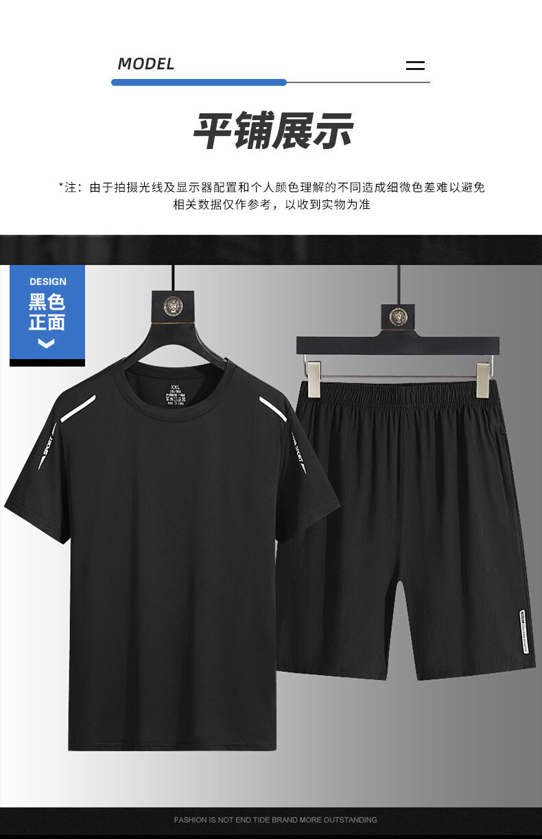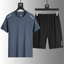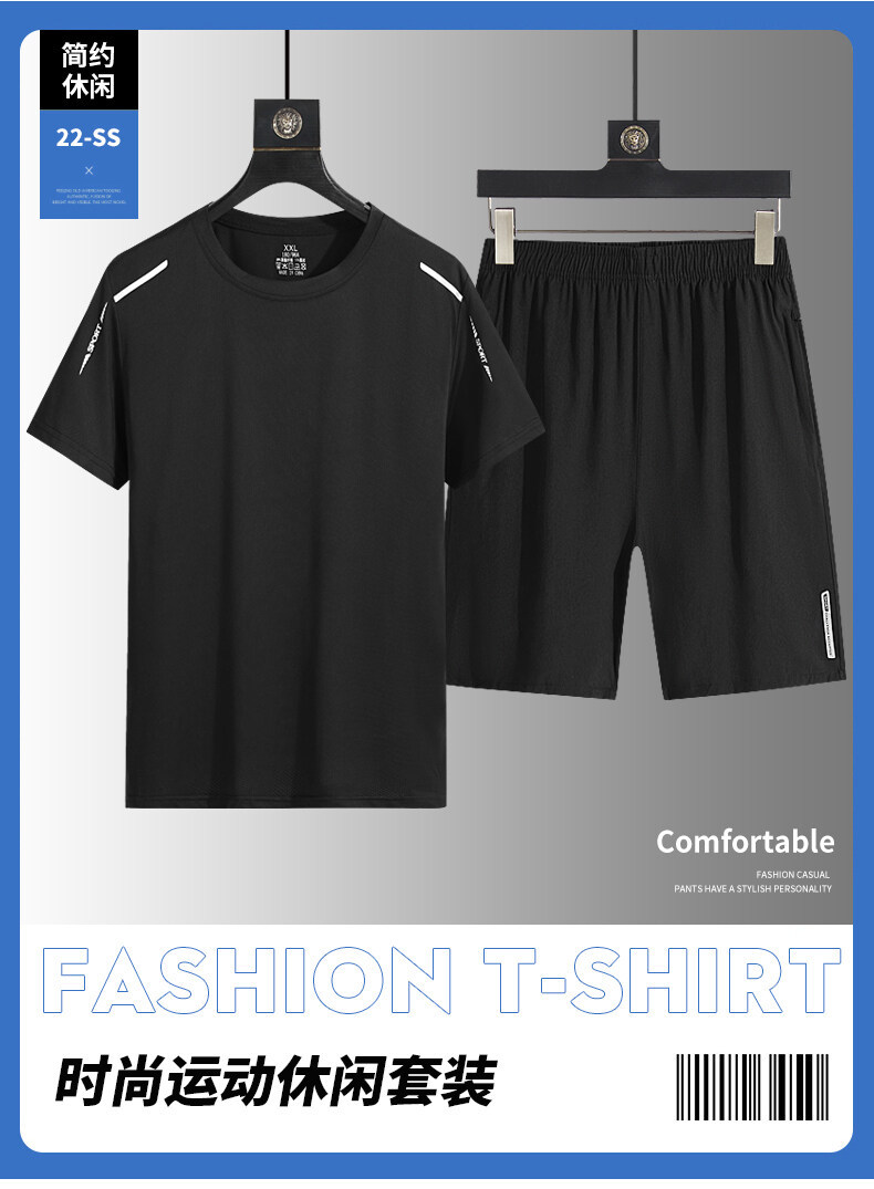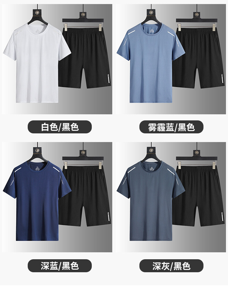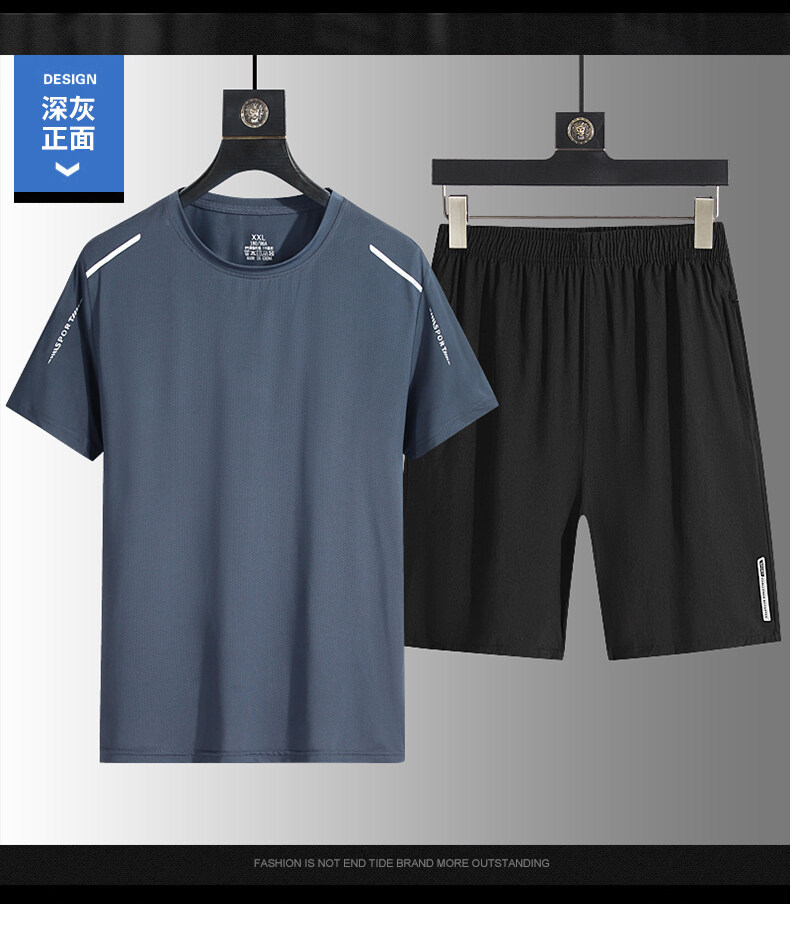夏季新款薄款短袖男T恤短裤爸爸套装冰丝透气速干衣跑步健身套装