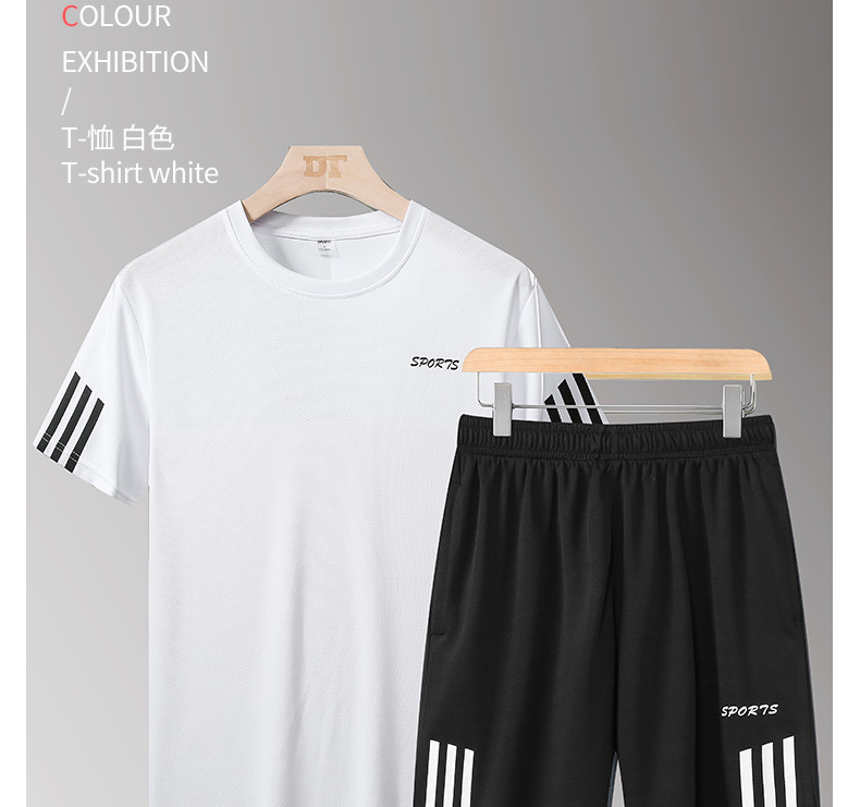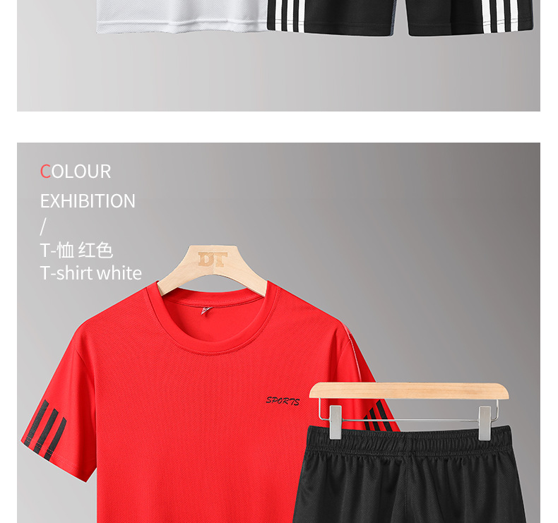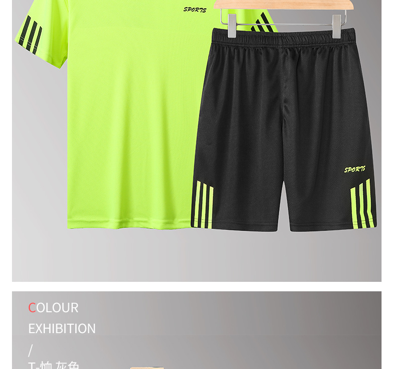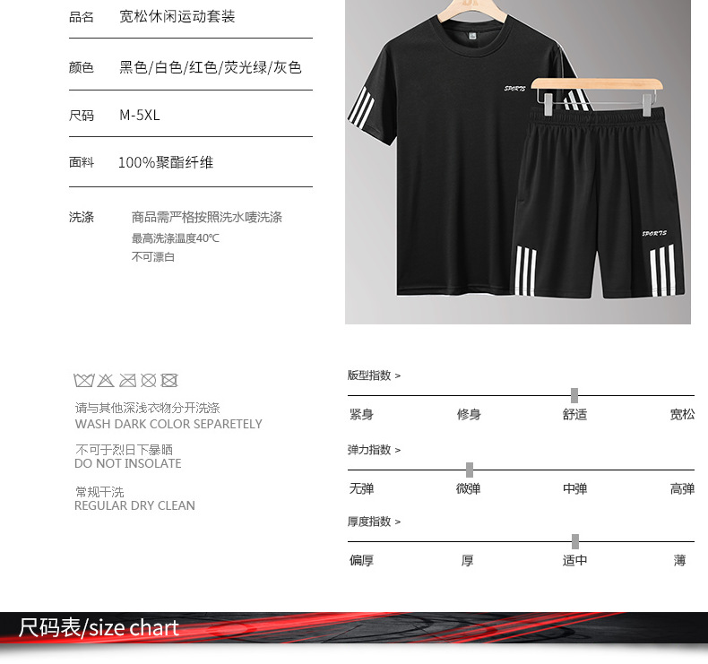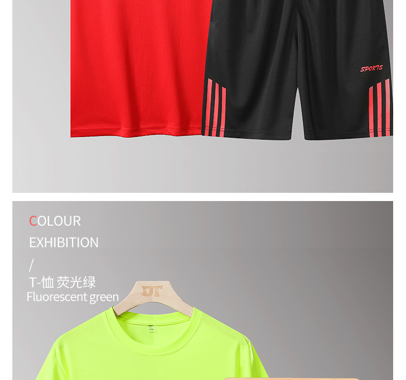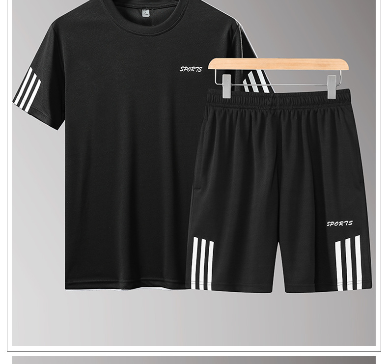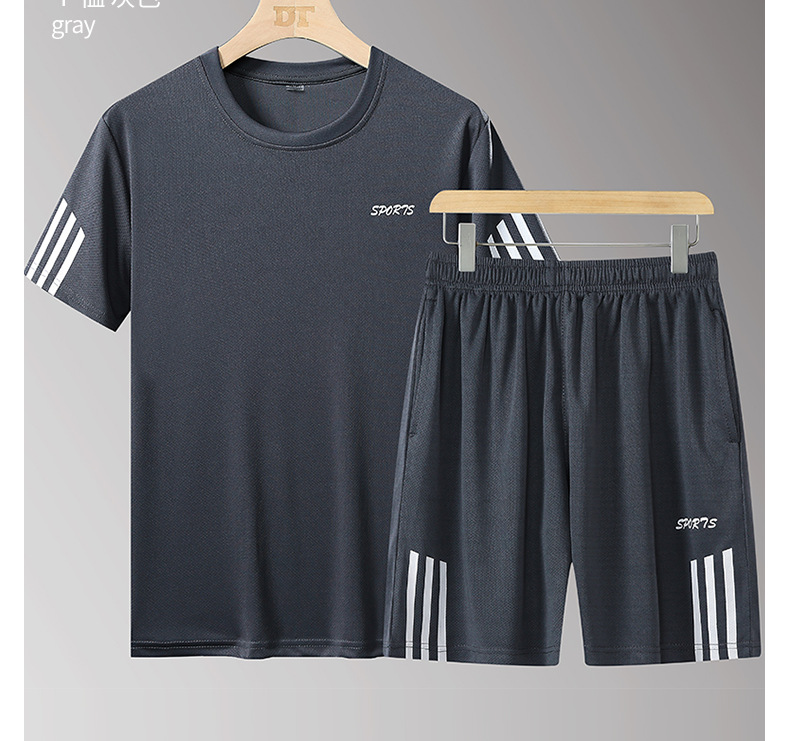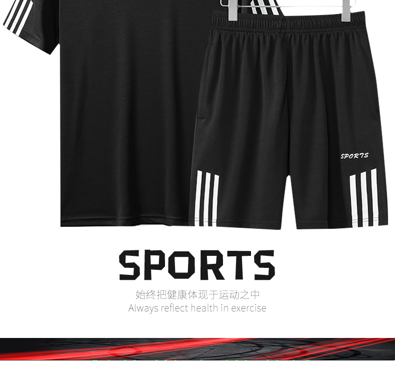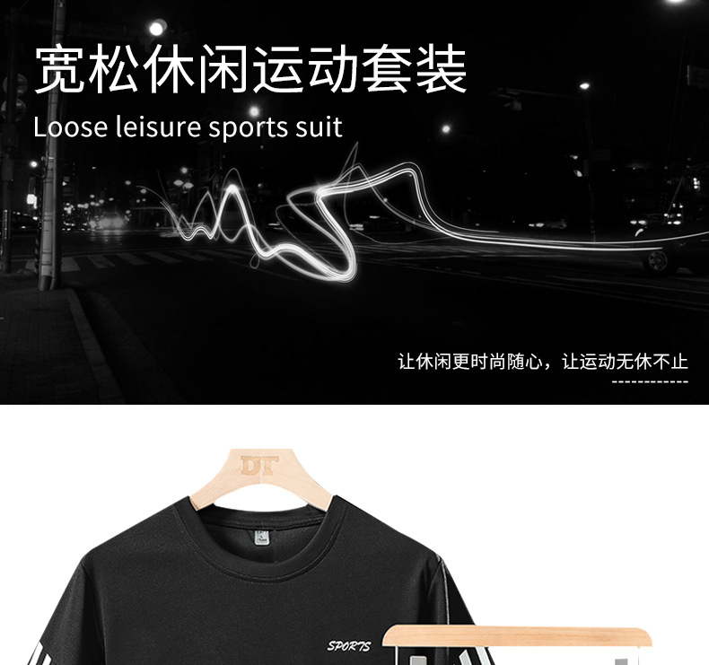 工厂直销夏季薄款休闲运动套装男女同款宽松透气T恤男五分裤一套