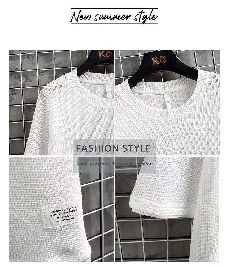 外贸运动休闲宽松华夫格短袖套装夏季T恤+短裤韩版帅气情侣装欧码