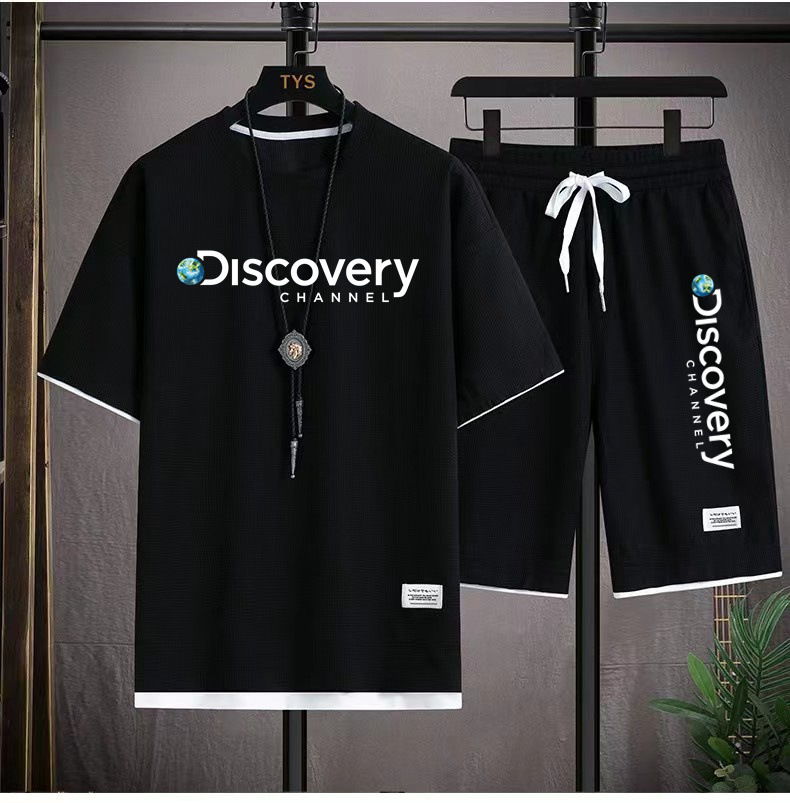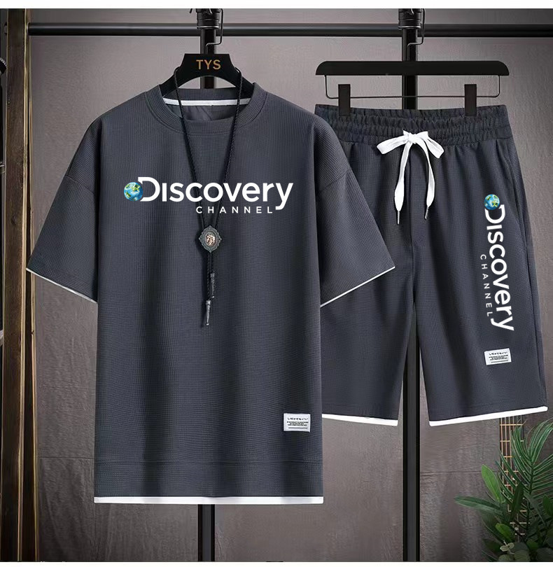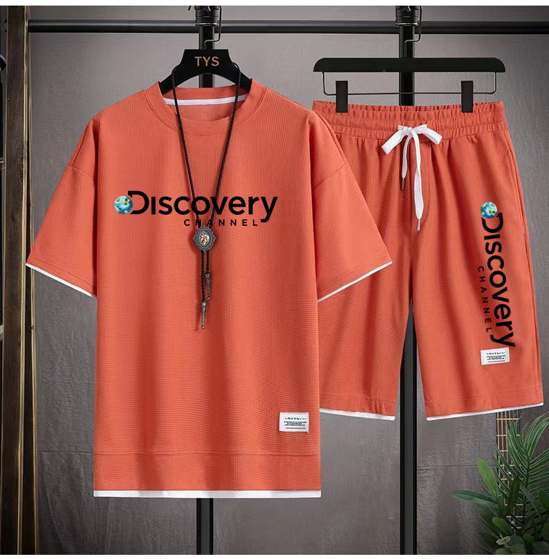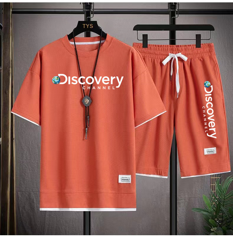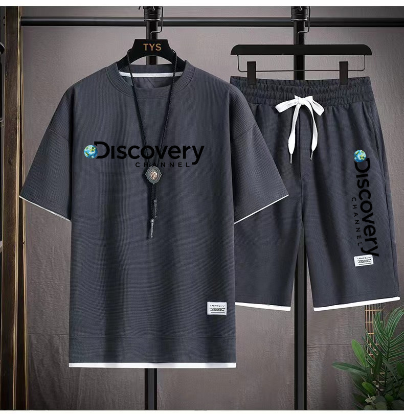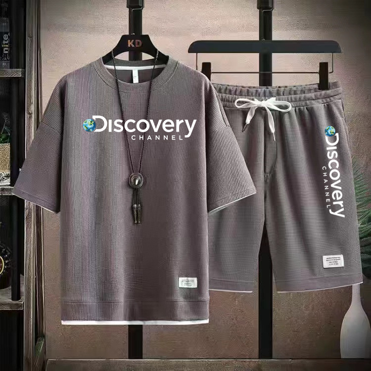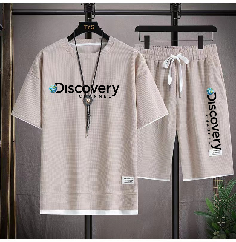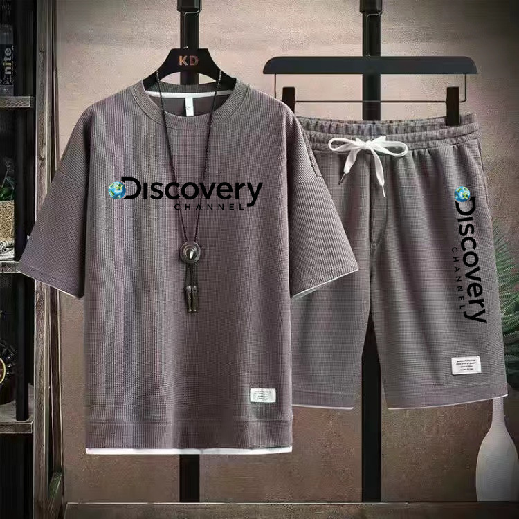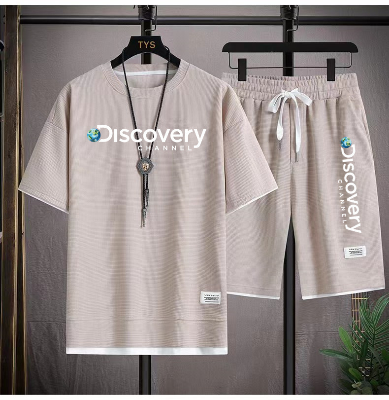 华夫格短袖t恤套装男生宽松潮流五分裤休闲运动夏季运动短袖套装