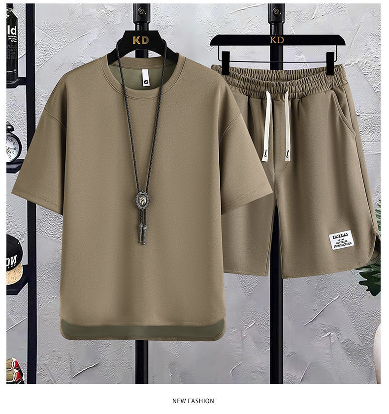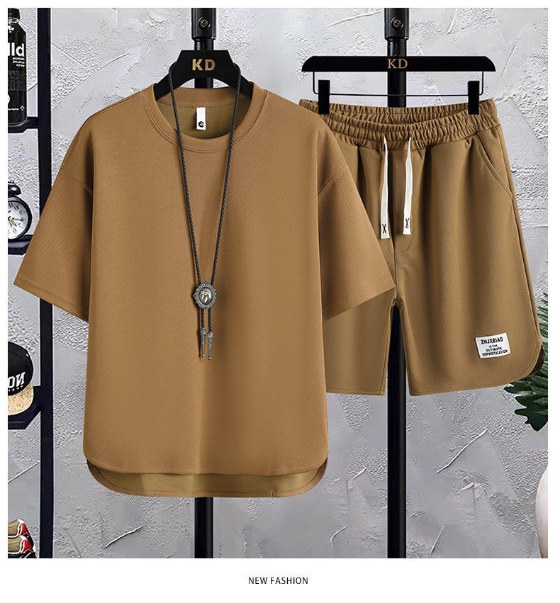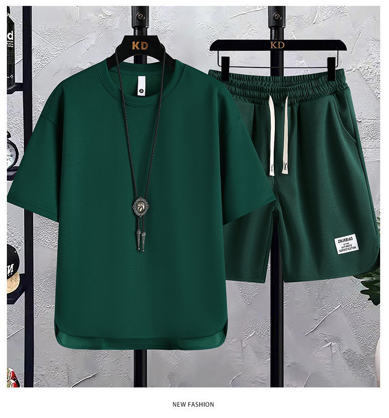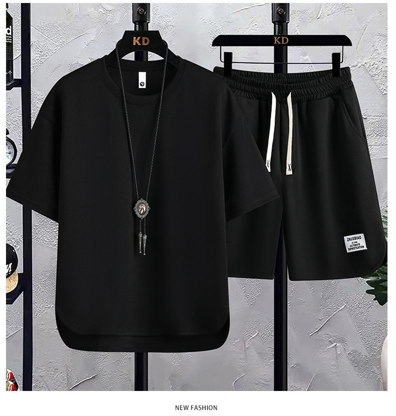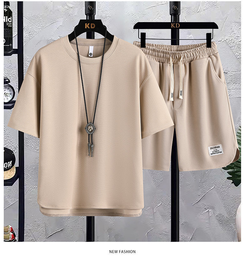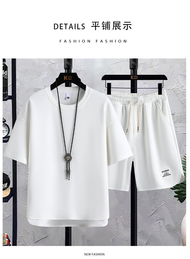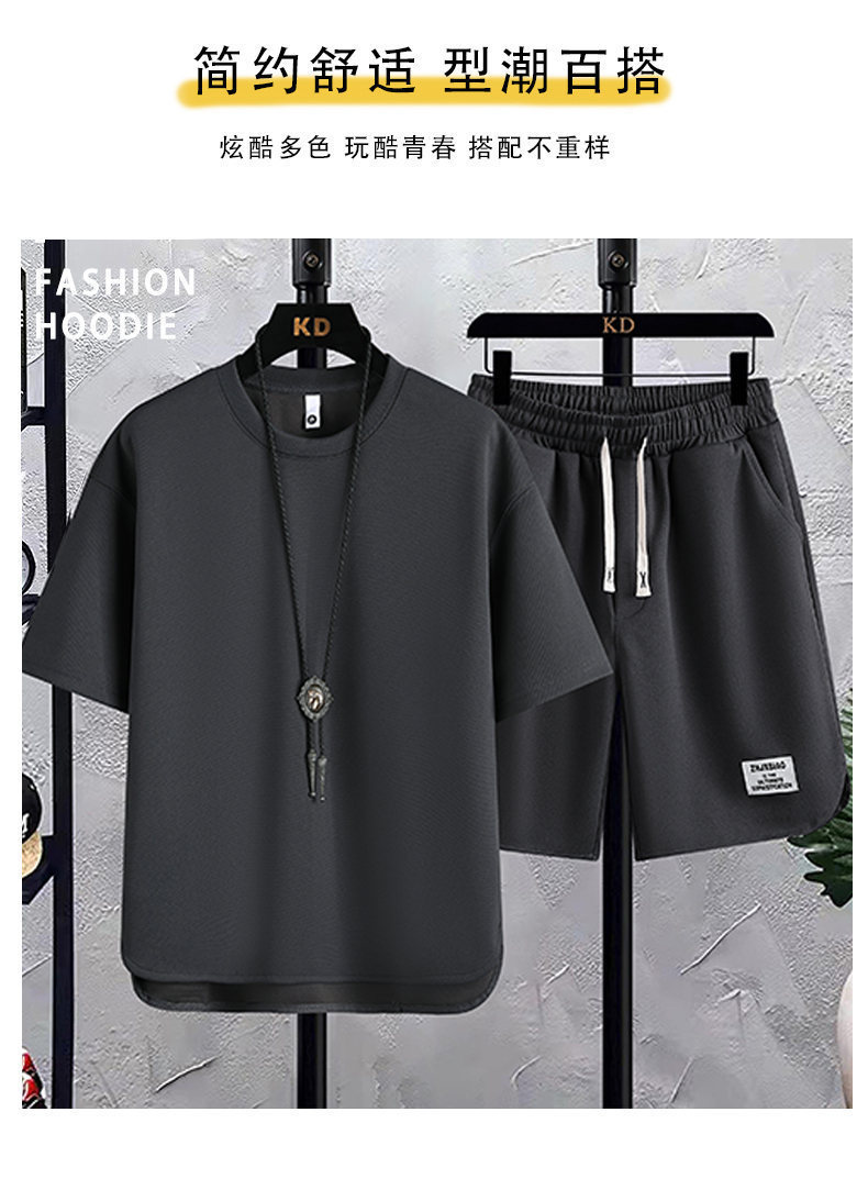 时尚套装华夫格短袖t恤潮牌夏季新款宽松韩版潮运动休闲两件套