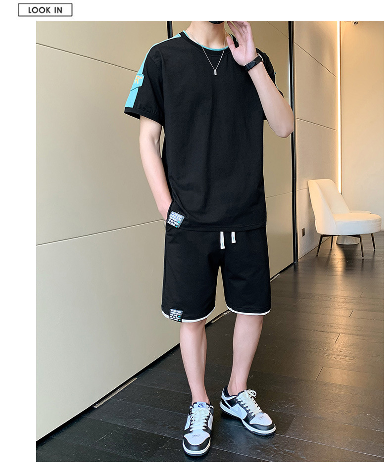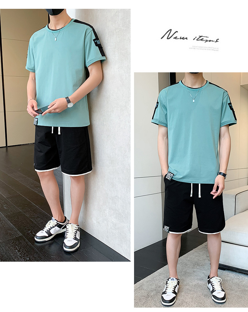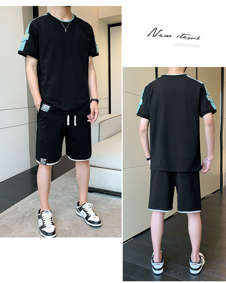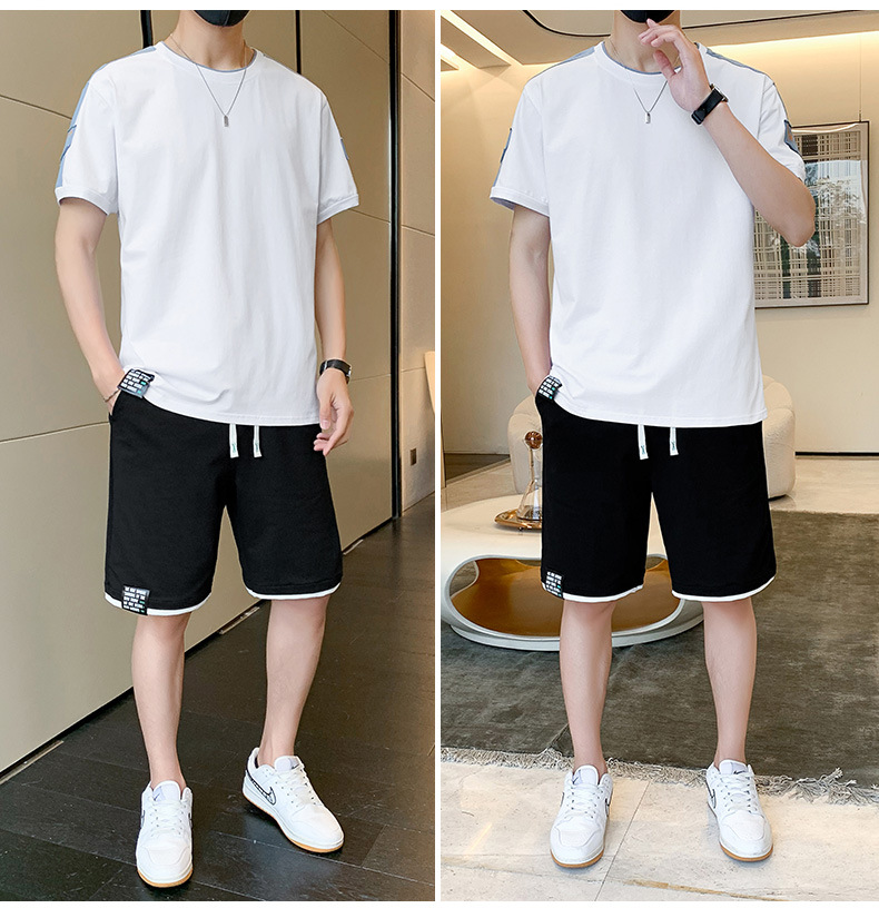 纯棉短袖t恤男士夏季潮牌2024新款一套搭配帅气运动短裤夏天套装
