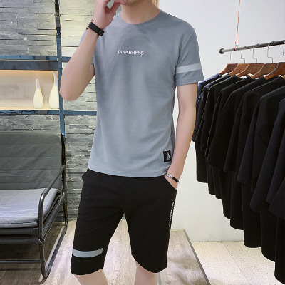 2023跨境新款东南亚蚂蚁皱运动套装休闲裤短袖t恤短裤两件套潮流