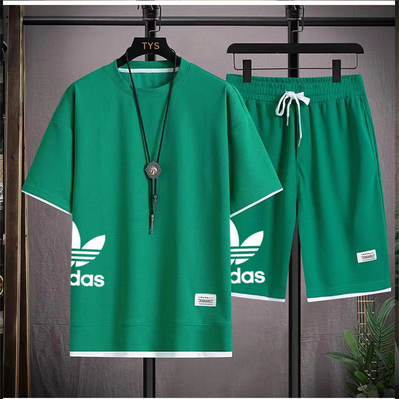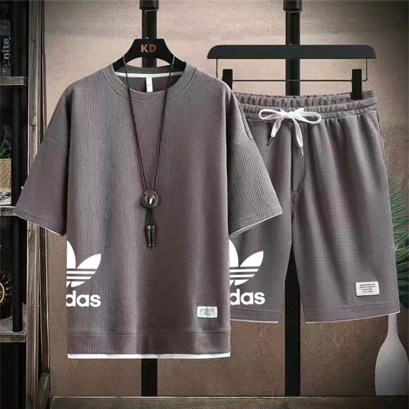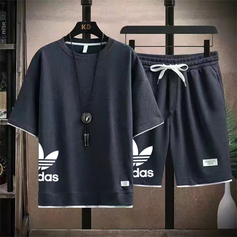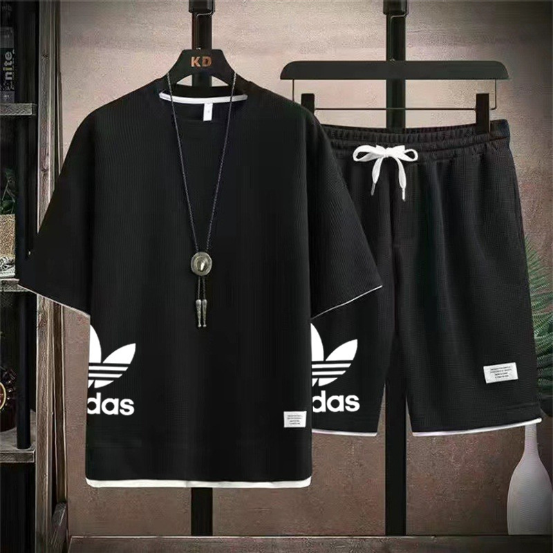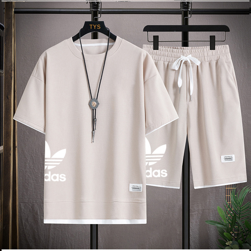 港风慵懒原宿百搭文艺时尚潮流男装新款五分短裤短袖T恤休闲套装