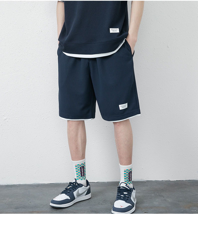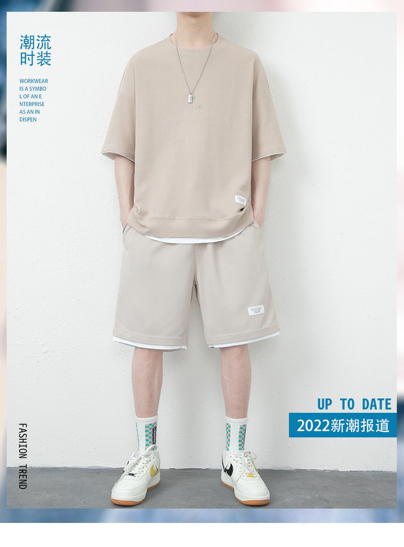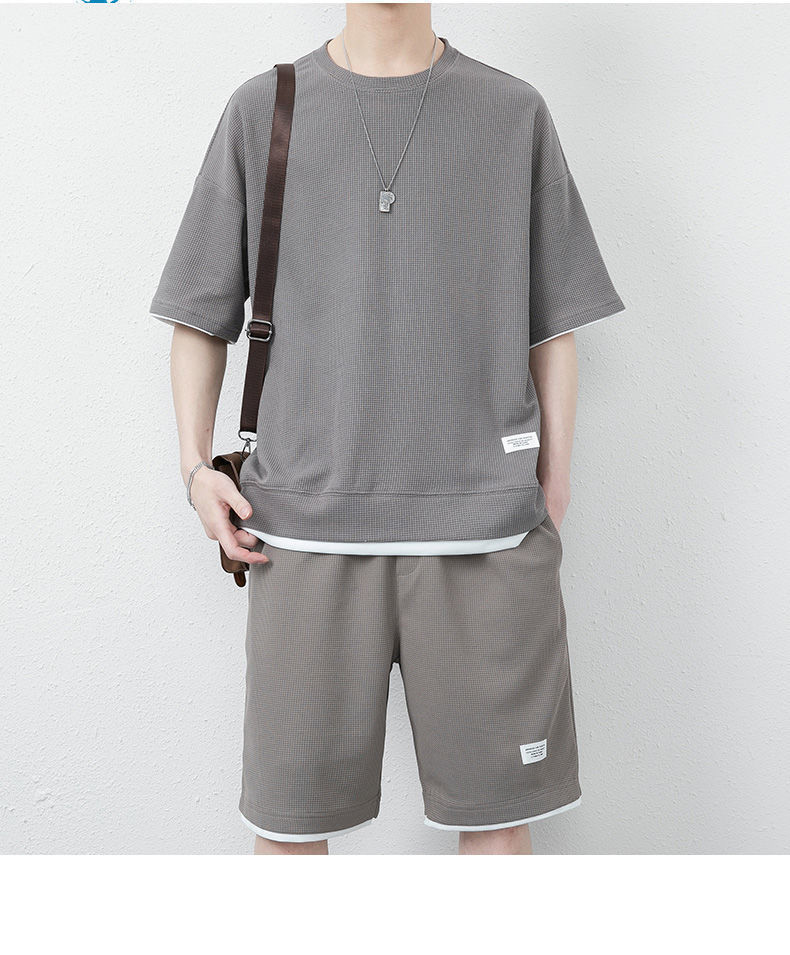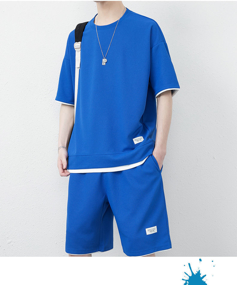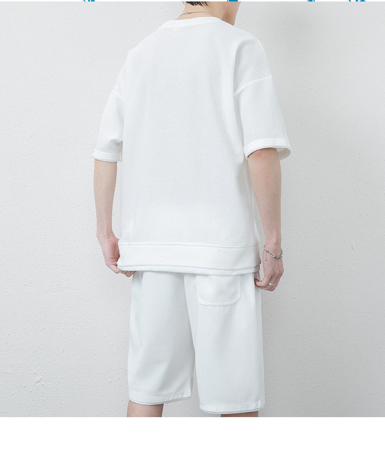 华夫格休闲套装男夏季冰丝短袖t恤男装一套搭配帅气大码运动套装