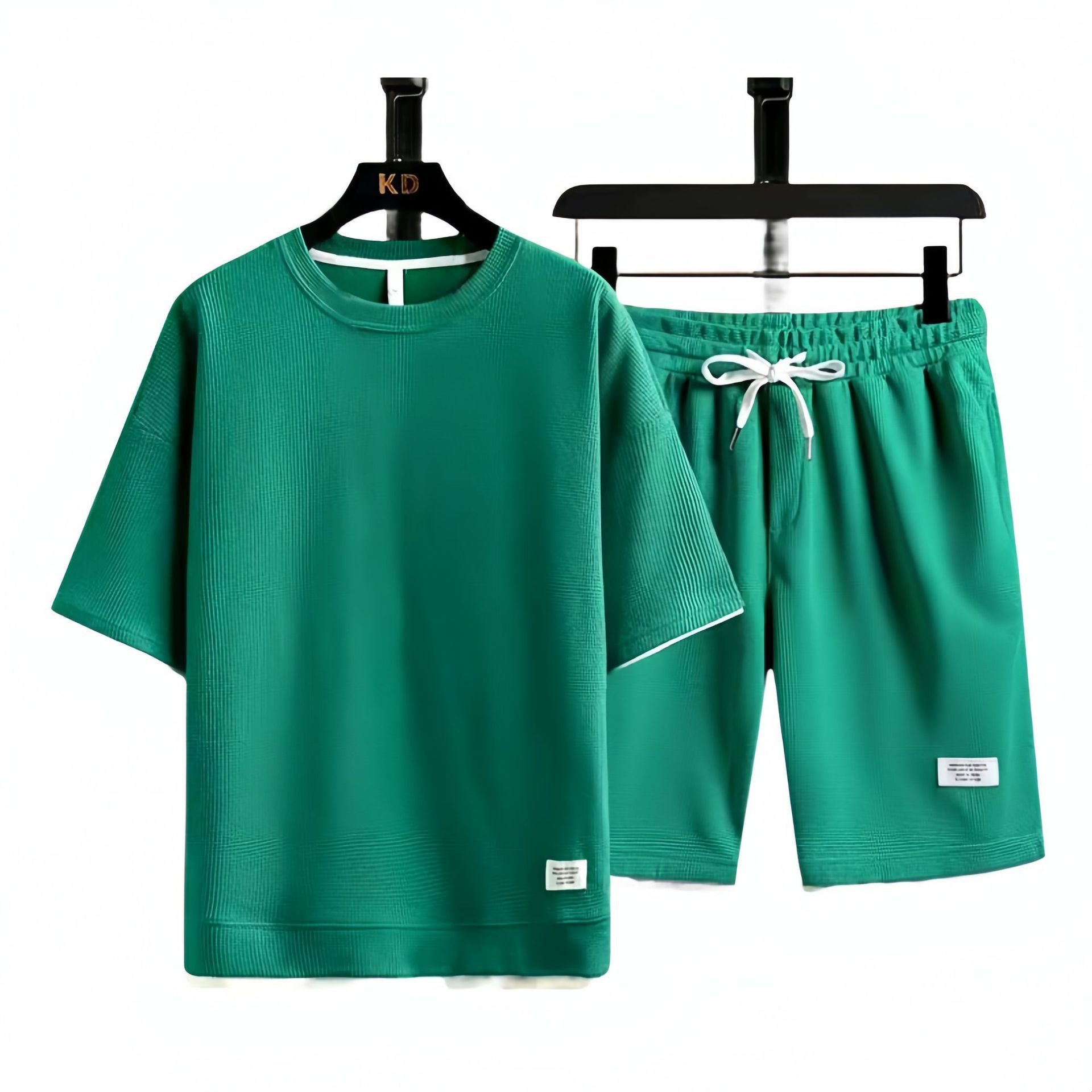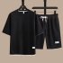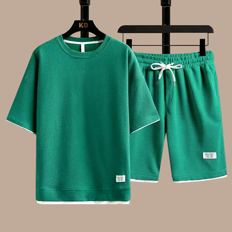 华夫格短袖t恤男士休闲运动套装批发夏季宽松假两件半袖T恤两件套