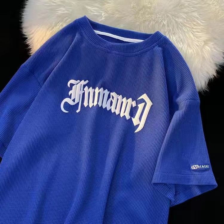 华夫格休闲套装男夏季冰丝短袖t恤男装一套搭配潮运动衣服代发