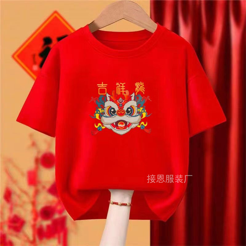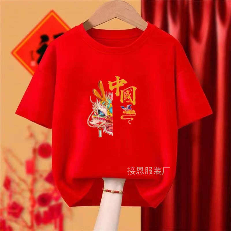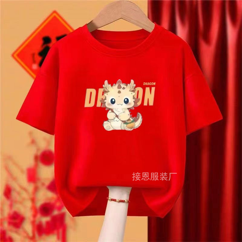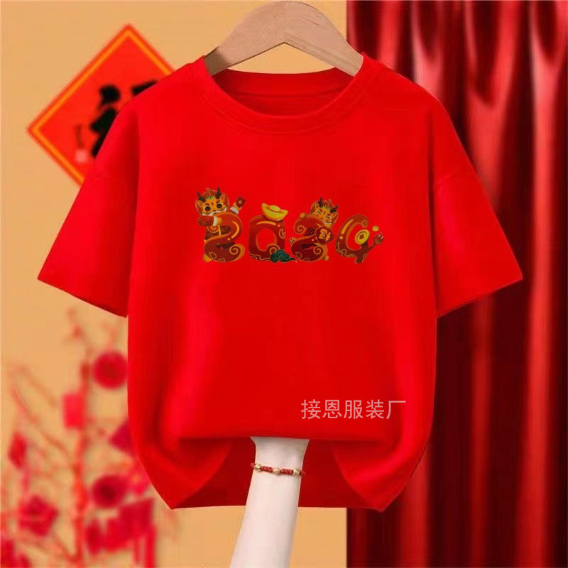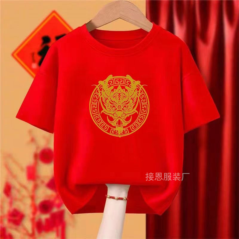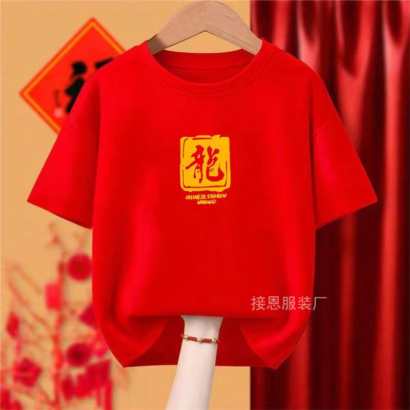 新款龙年本命年纯棉红色短袖t恤男女情侣新年亲子装衣服洋气半袖