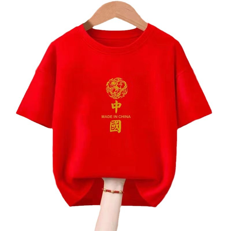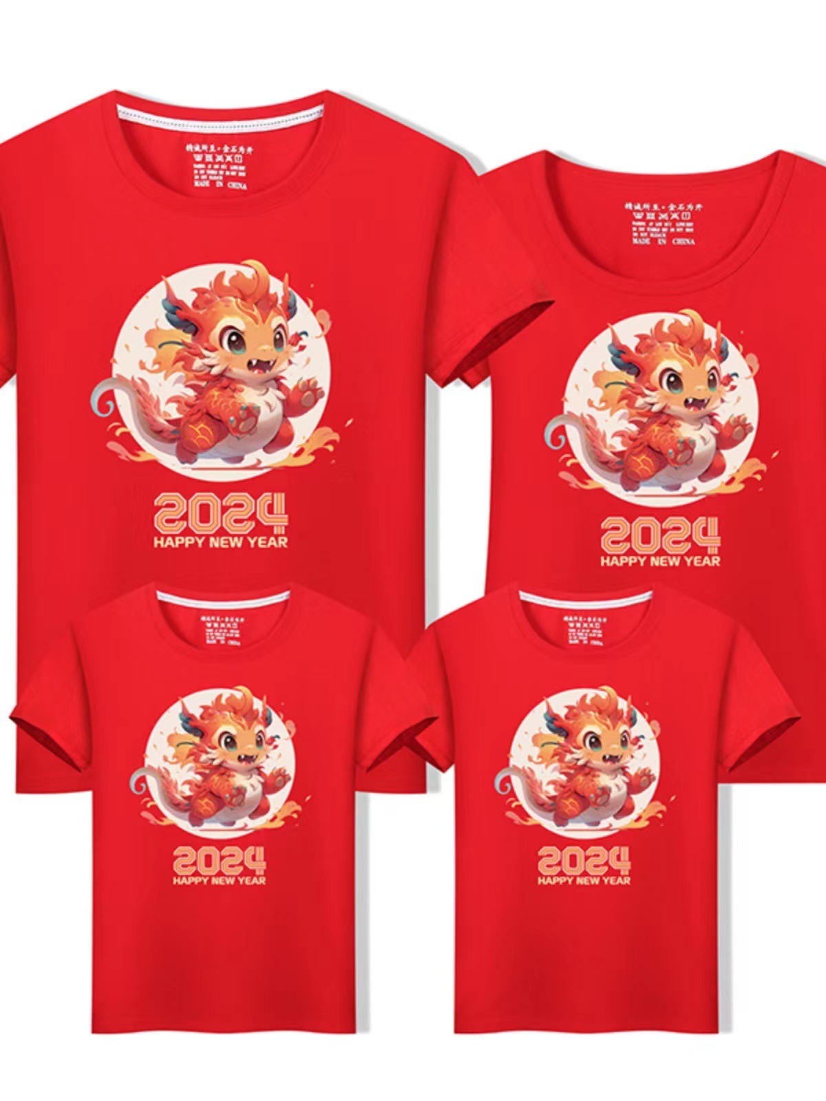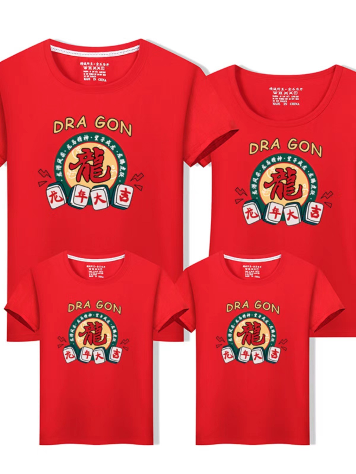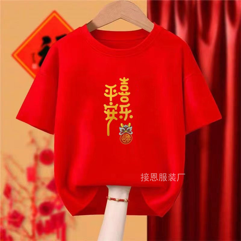 新款龙年本命年纯棉红色短袖t恤男女情侣新年亲子装衣服洋气半袖