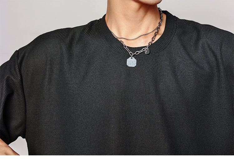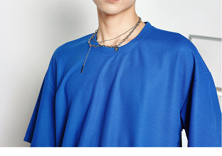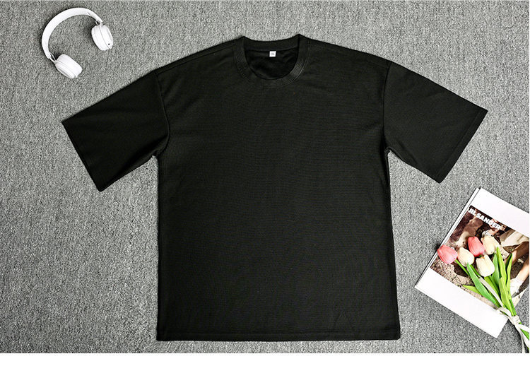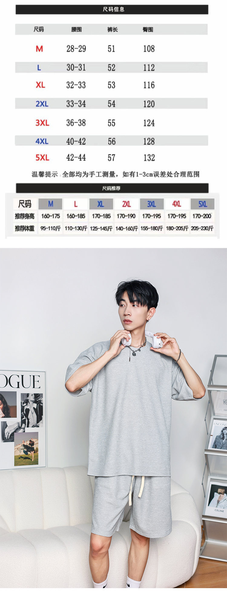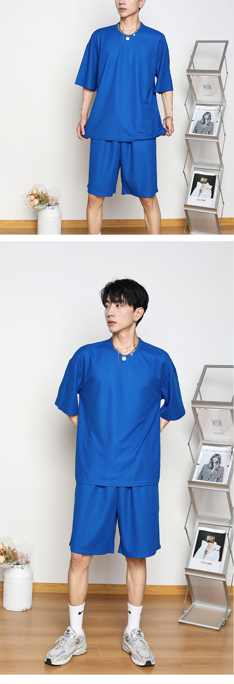 华夫格短袖套装男 夏季欧美式高克重纯色光板半袖T恤衫两件套男装