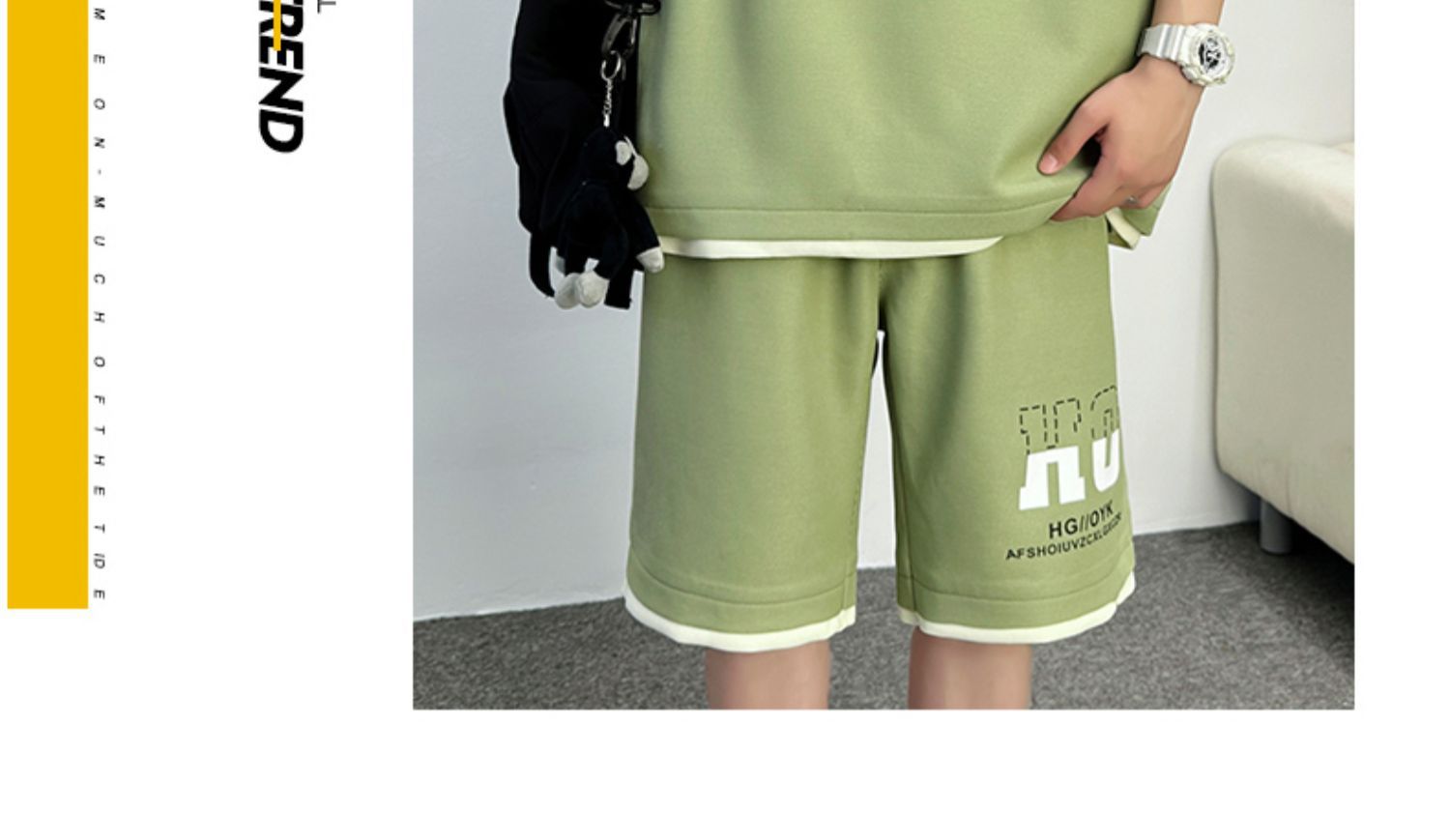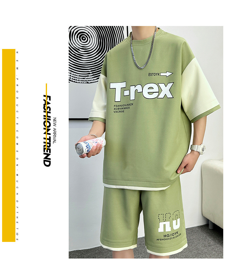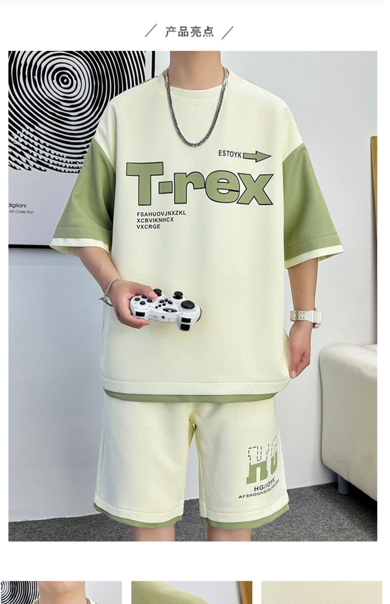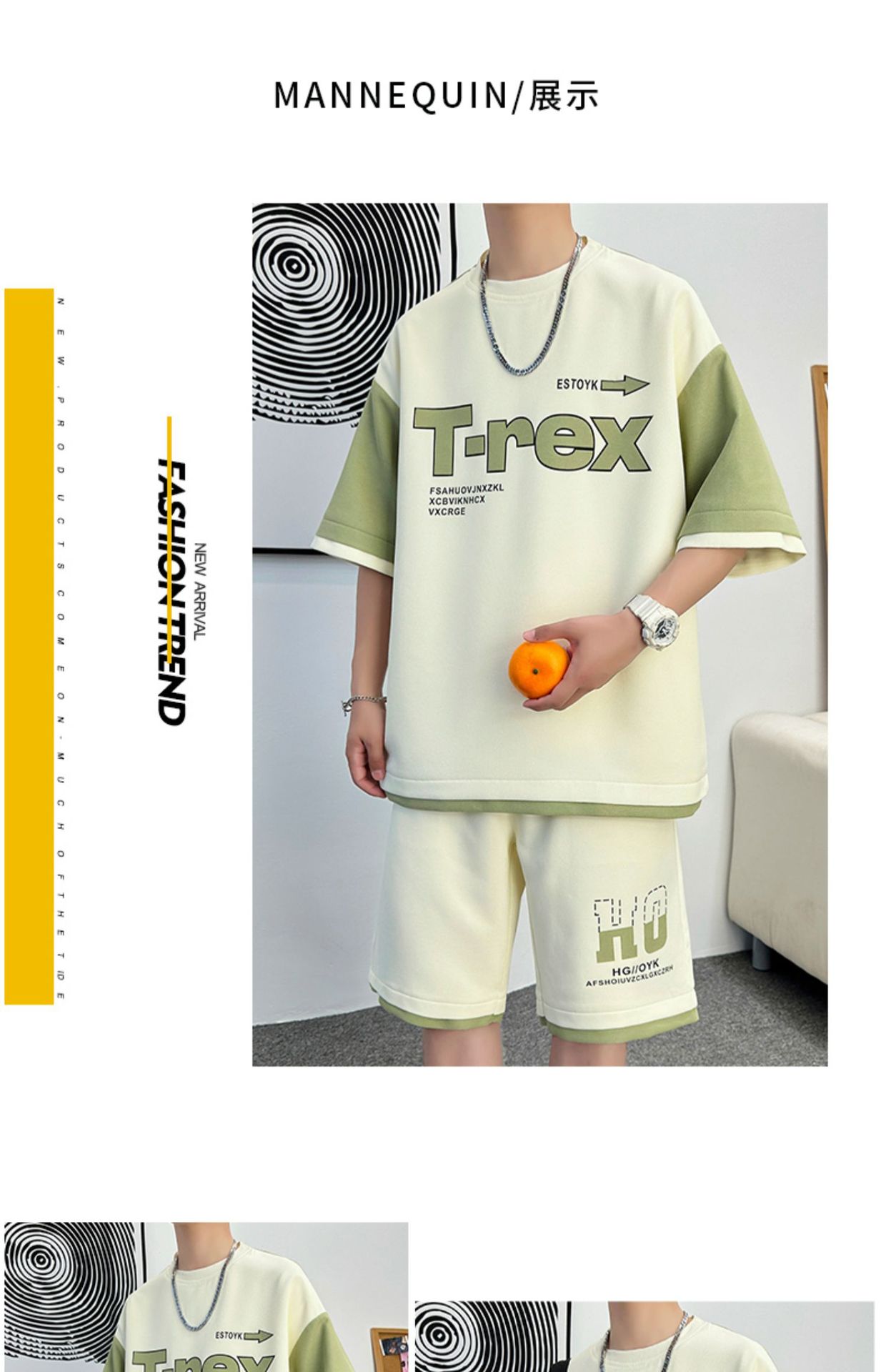 短袖套装男夏季字母冰丝半袖t恤男装休闲运动一套搭配帅气衣服潮