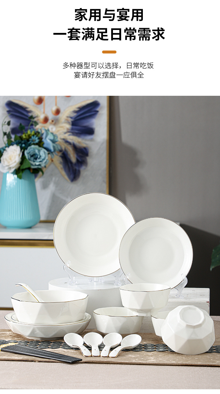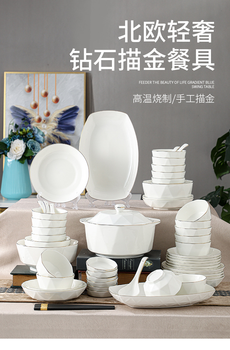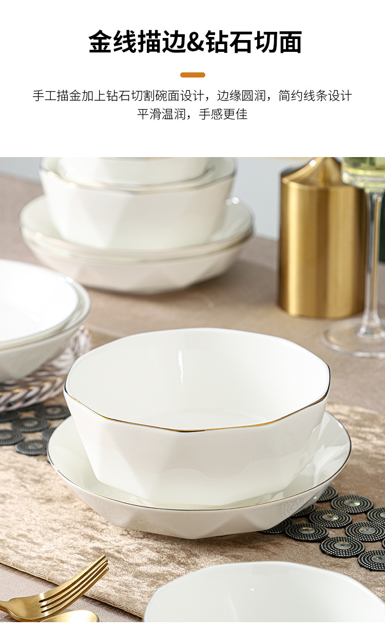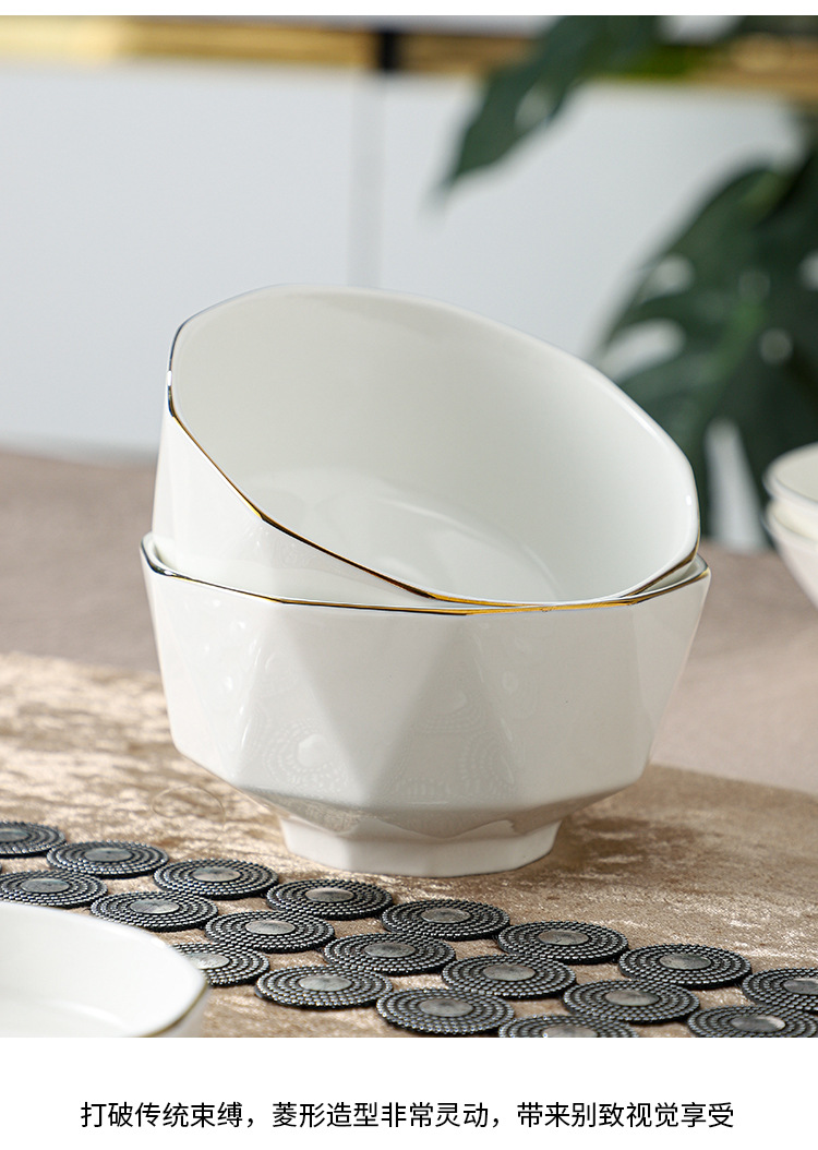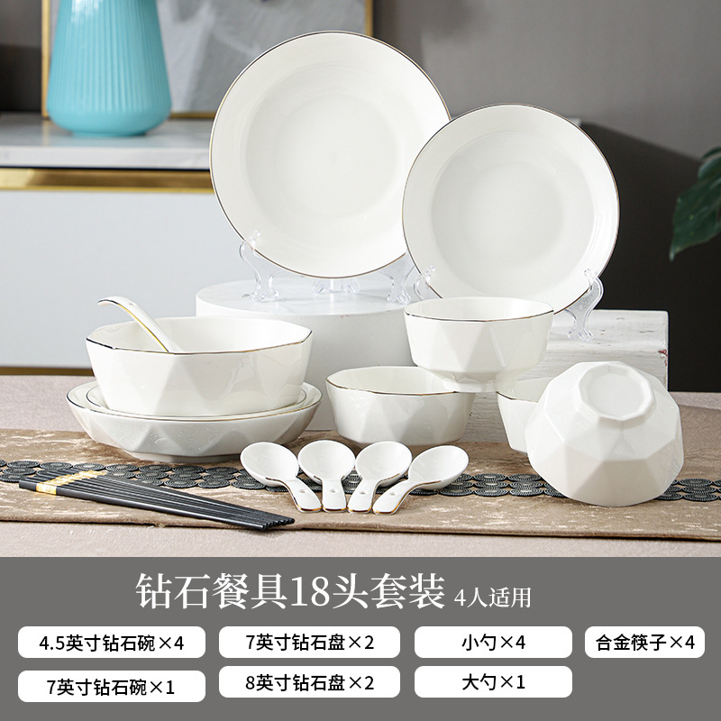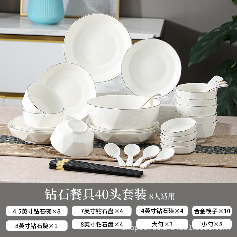 ceramic tableware suit household diamond bowl dish and bowl plate high color value moving into the new house real estate gift set