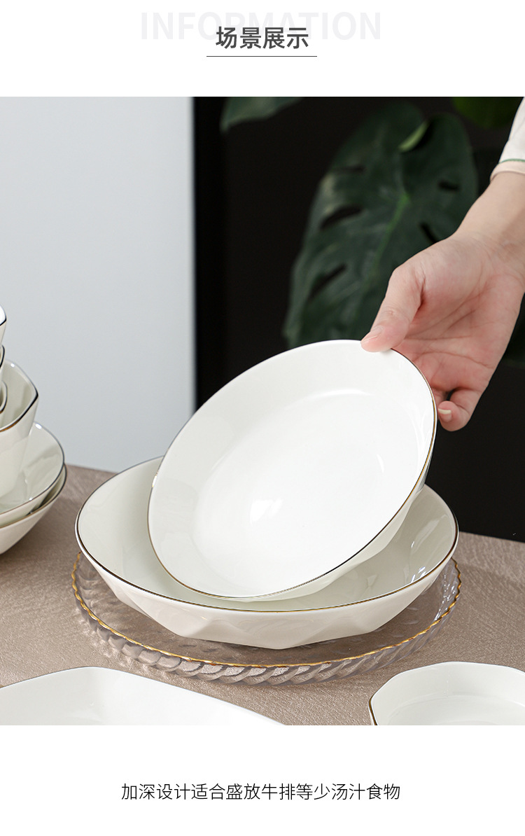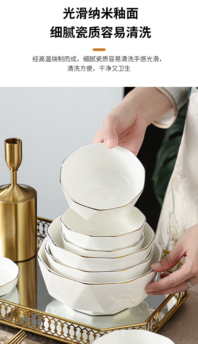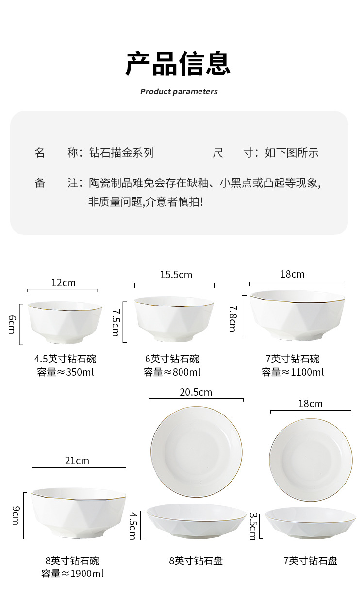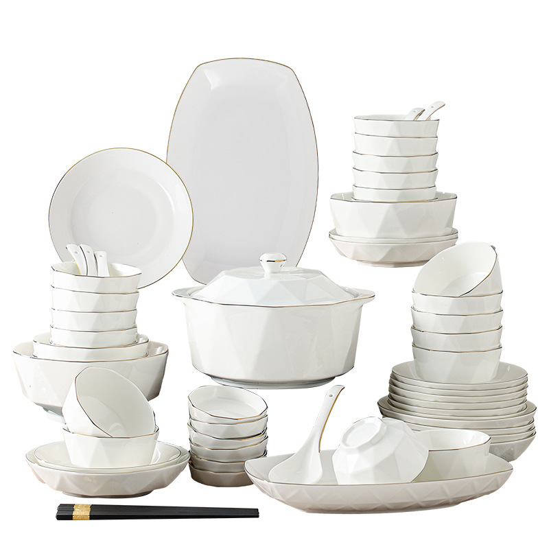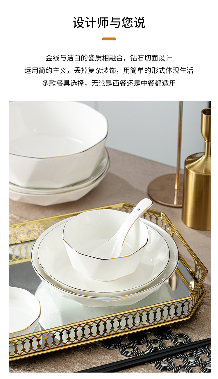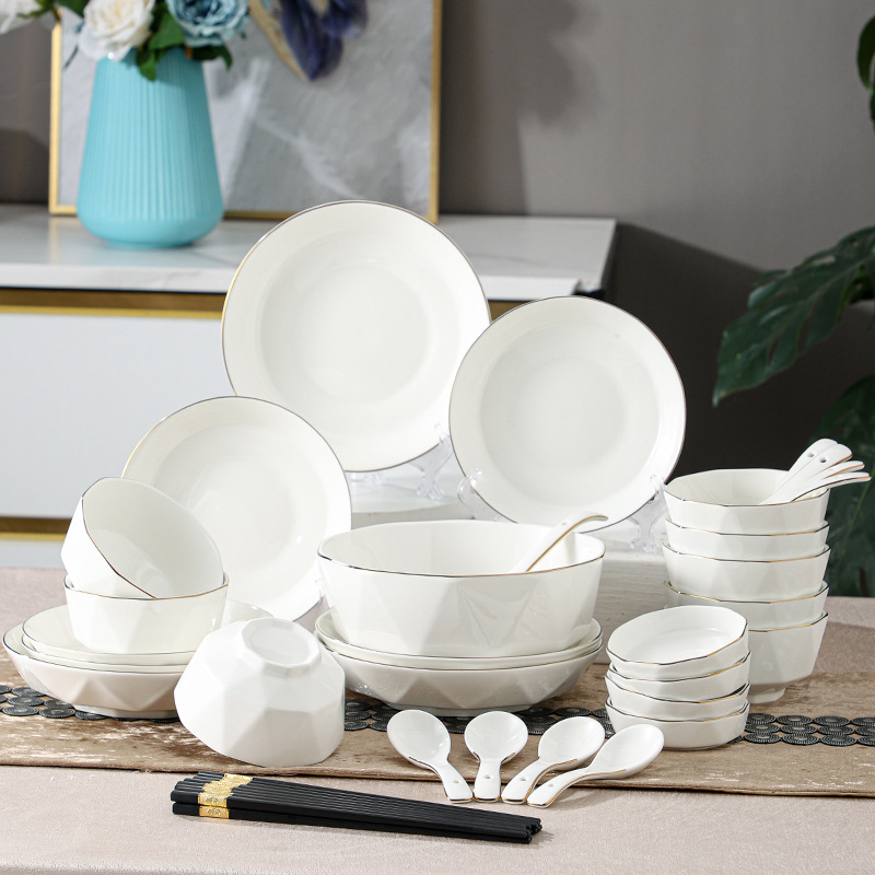 ceramic tableware suit household diamond bowl dish and bowl plate high color value moving into the new house real estate gift set