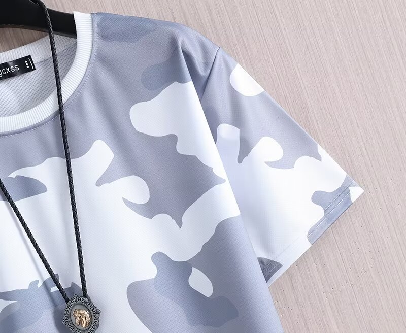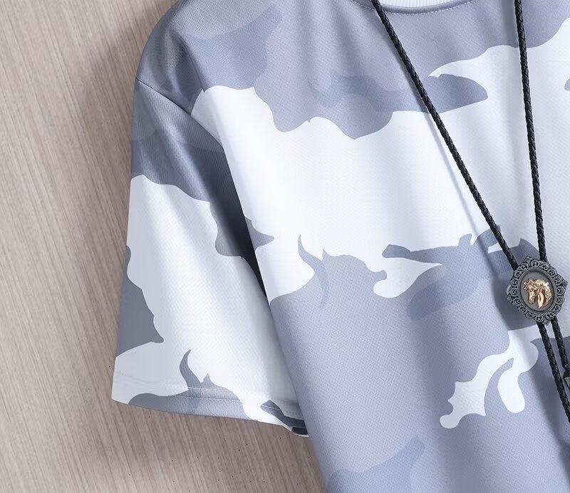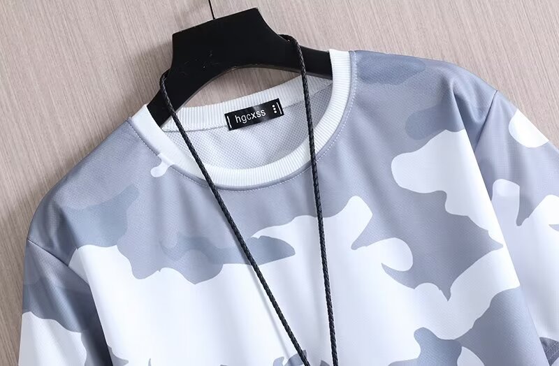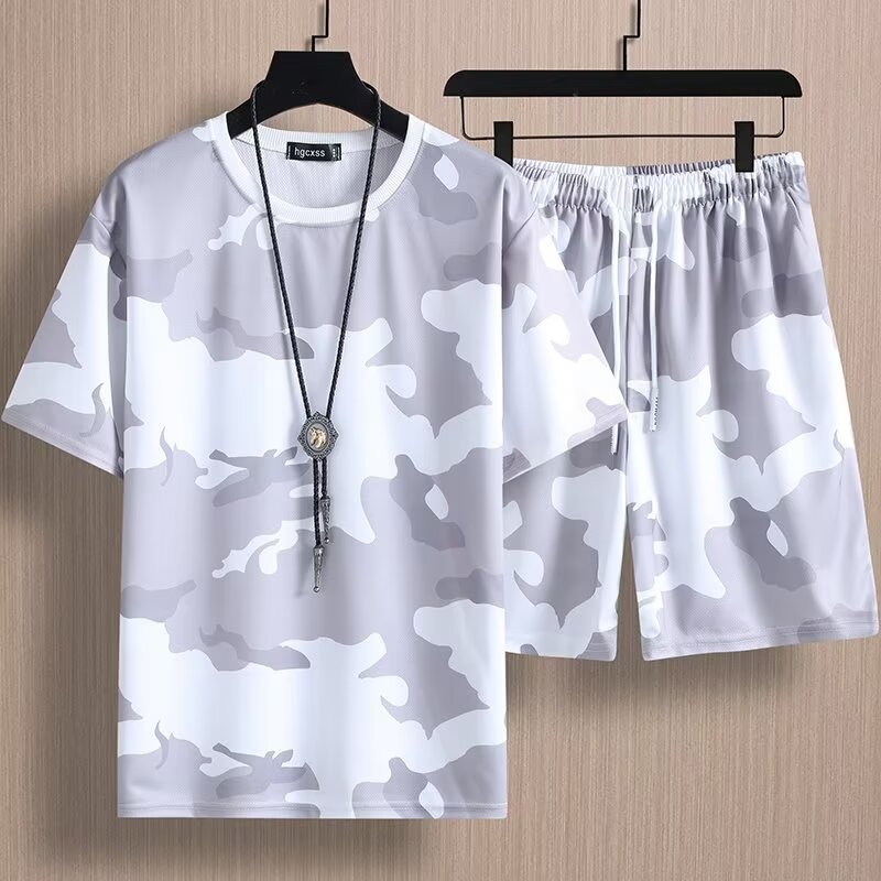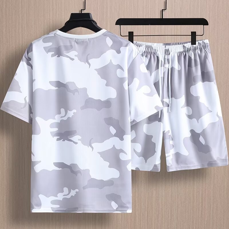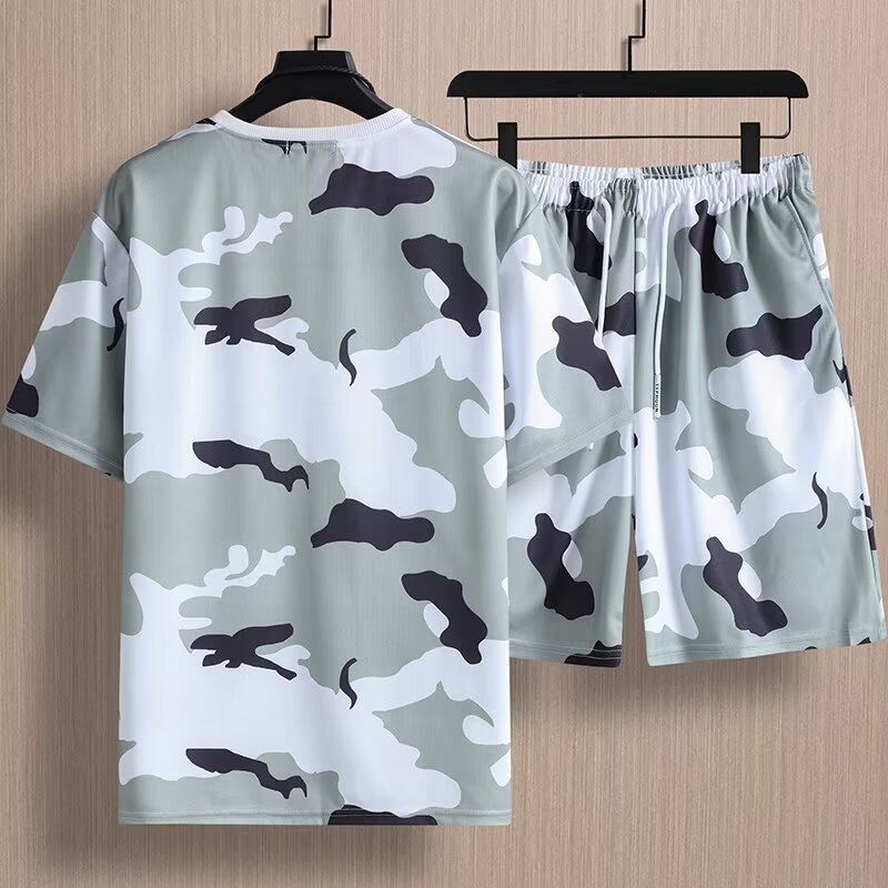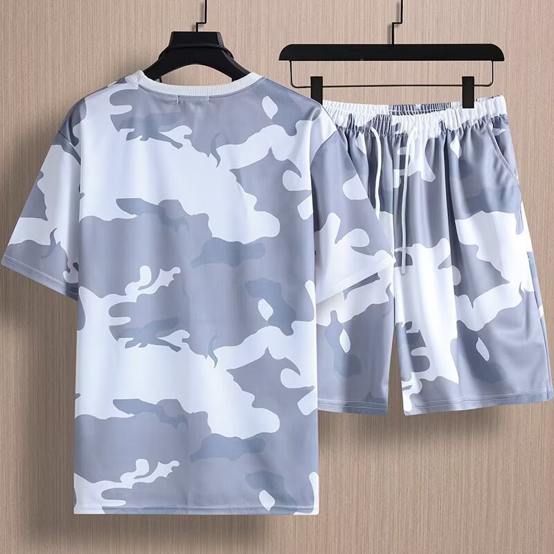 厂家批发夏季迷彩运动套装男透气速干运动服男短袖T恤休闲两件装