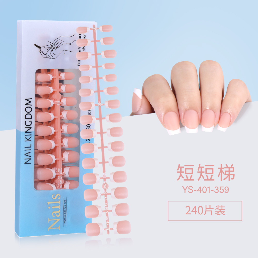 新款跨境法式穿戴甲 240片盒装假指甲美甲半成品磨砂全贴法式甲片