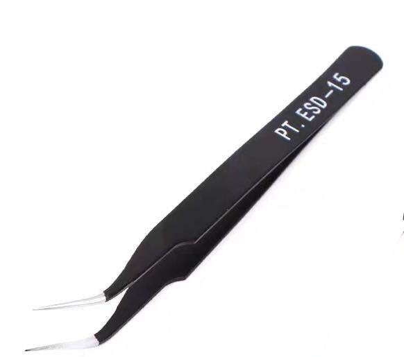ESD防静电金属镊子无压边不锈钢1.5MM尖头直头弯头美甲工具镊子