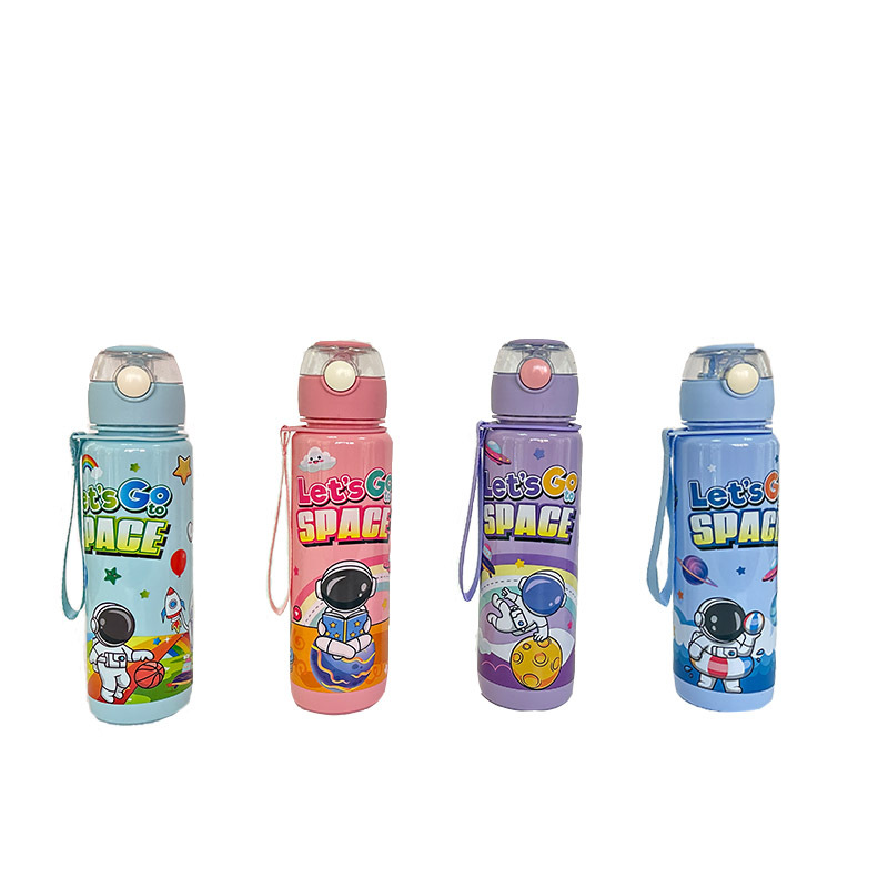 新款卡通宇航员图案水杯儿童手提随手杯水杯便捷塑料杯弹跳盖杯