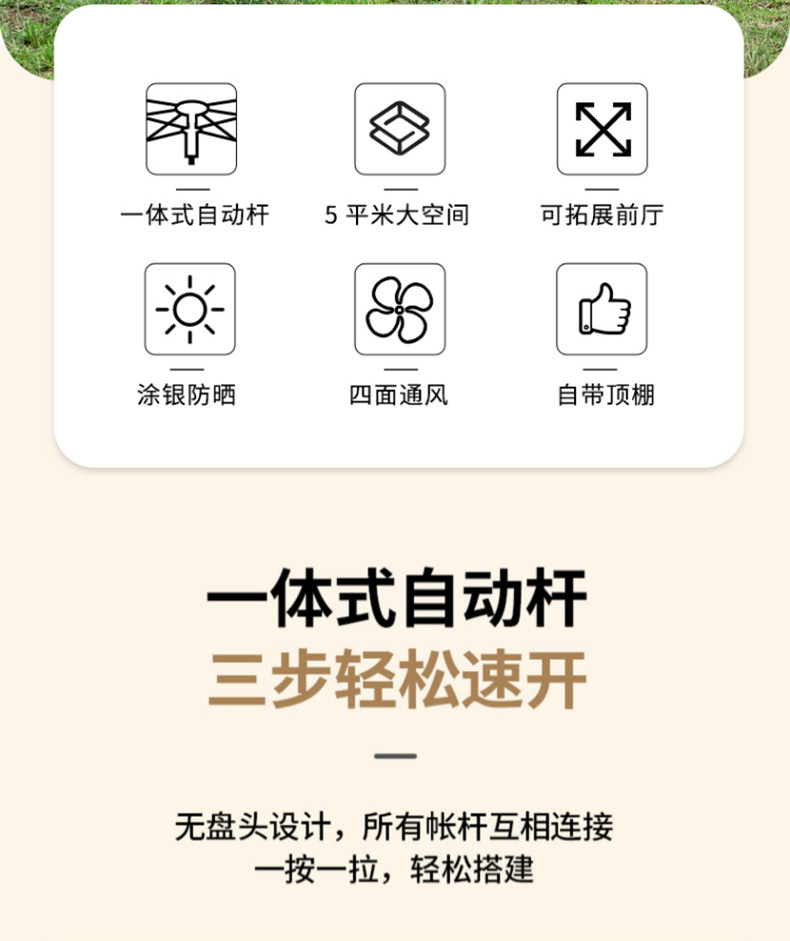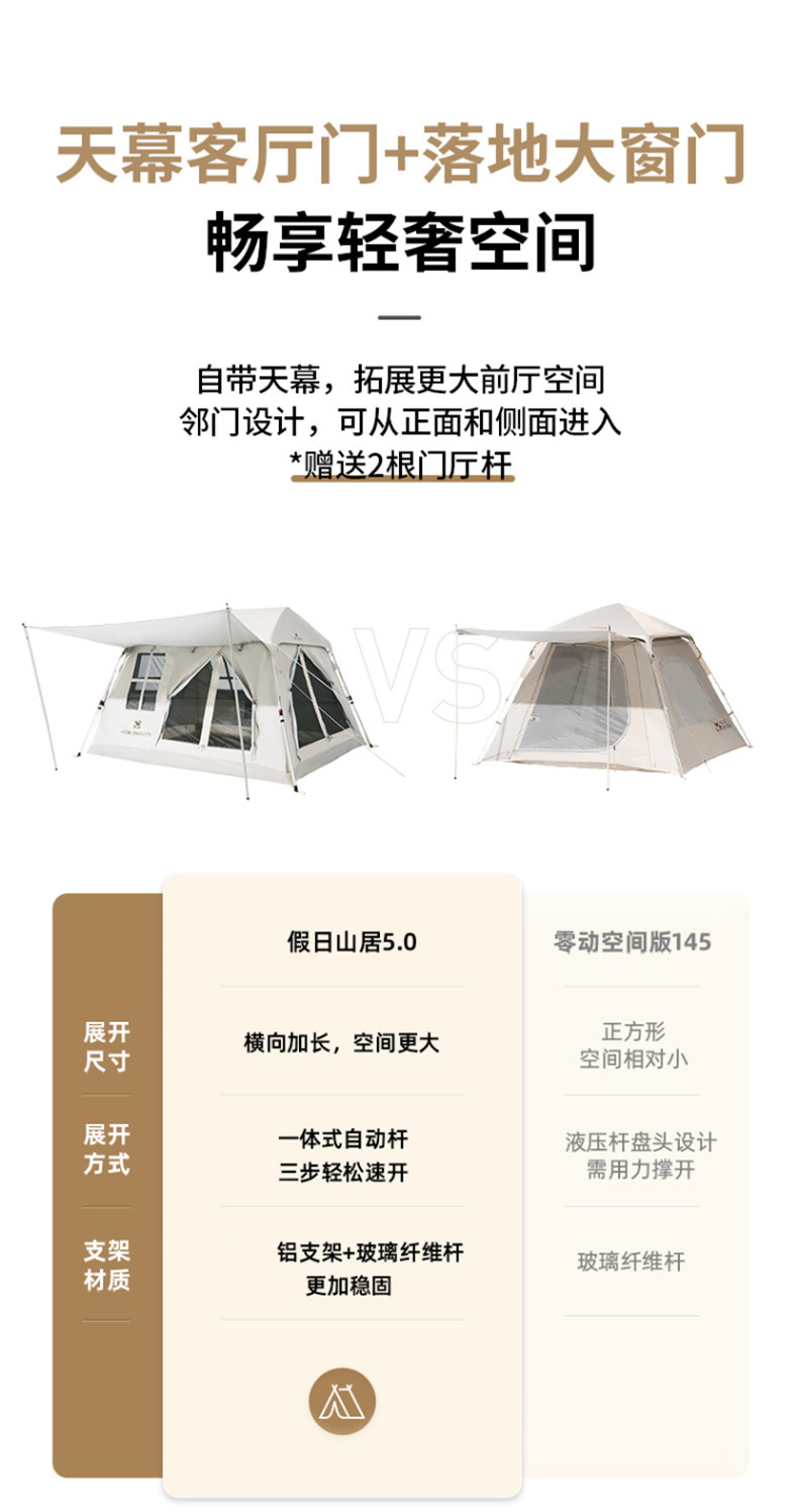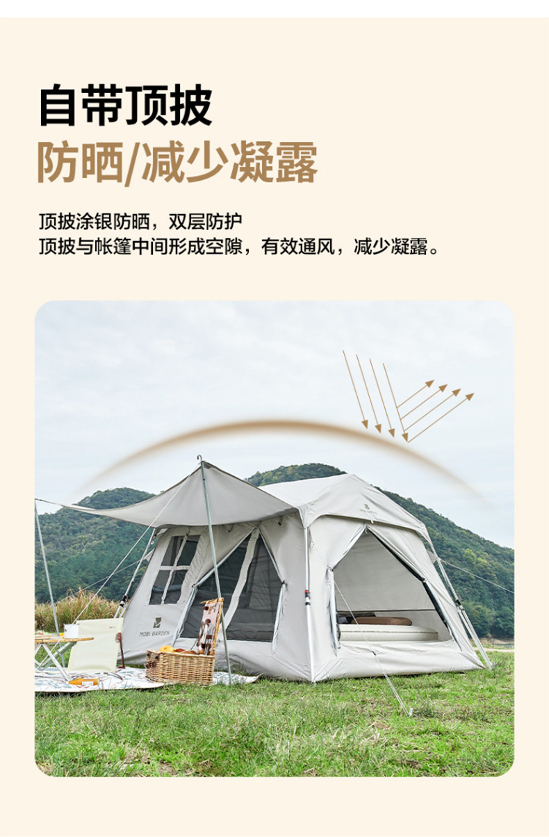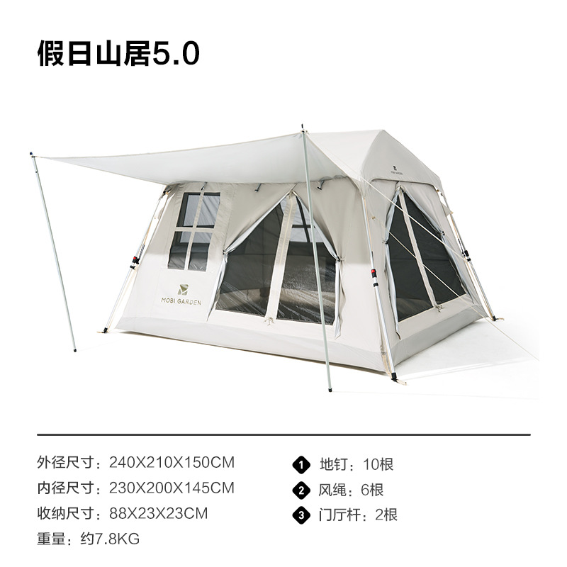 牧高笛帐篷户外露营防风防雨防晒屋型帐便携自动速开假日山居5.0