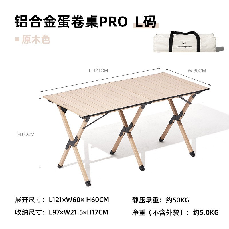 牧高笛户外折叠铝合金蛋卷桌精致露营超轻便携式野营野餐桌子山涧