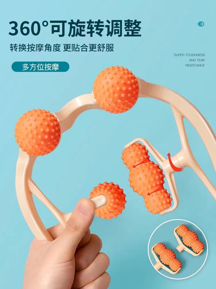 日本手动颈椎按摩器多功能夹脖子肩颈部腰部滚动揉捏疏通工具仪神