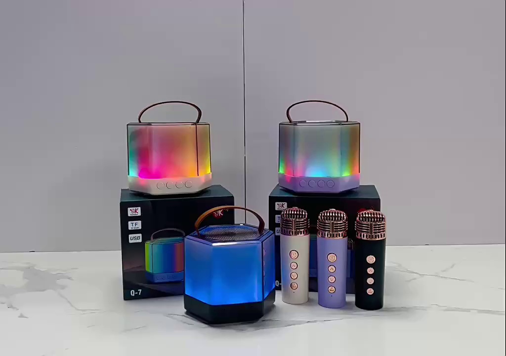 新款菱形蓝牙音箱麦克风K歌音响七彩氛围灯话筒音响户外蓝牙音响