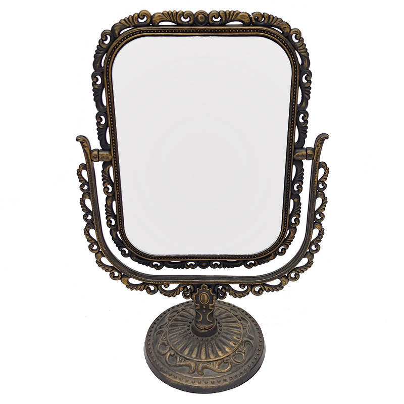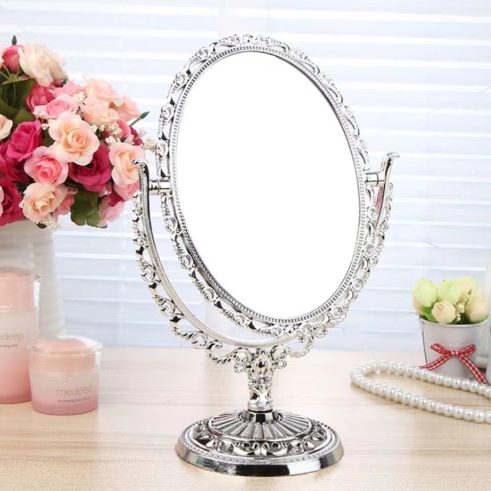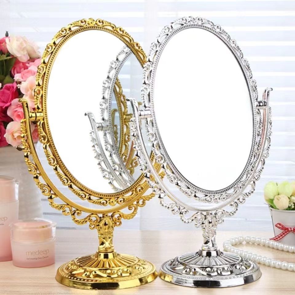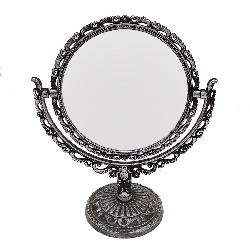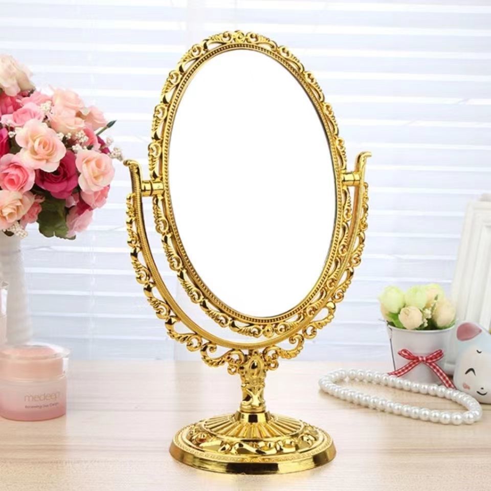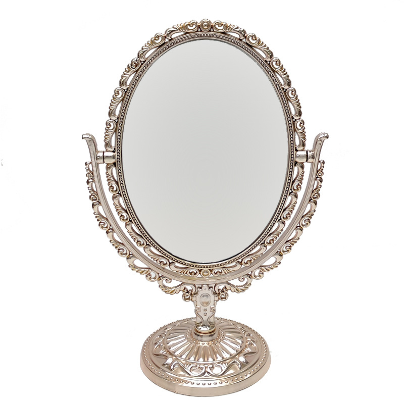 欧式双面化妆镜子复古花边台镜电镀家用梳妆镜子便携美妆镜可放大